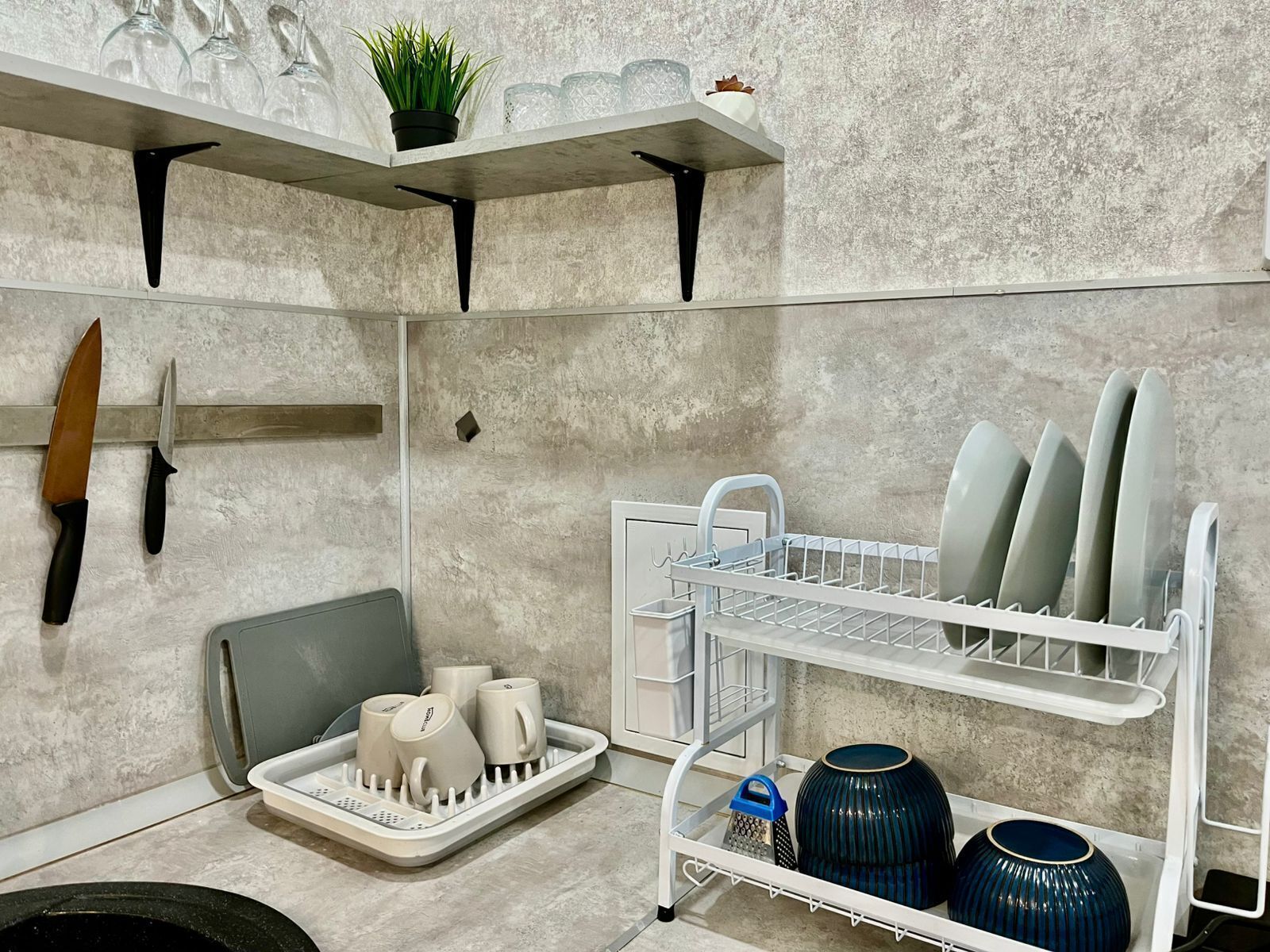 Комплектация: туалетные принадлежности (гель для тела, шампунь, тапочки, зубные щетки и пасты, туалетная бумага, капсулы для стирки), чай, конфеты, двуспальный диван, постельное белье, полотенца, телевизор, варочная поверхность, микроволновая печь, холодильник, стиральная машина, кондиционер, набор посуды и столовых приборов, чайник, фен, утюг, глад. доска, сушилка, интернет. Вид из окна на горы.