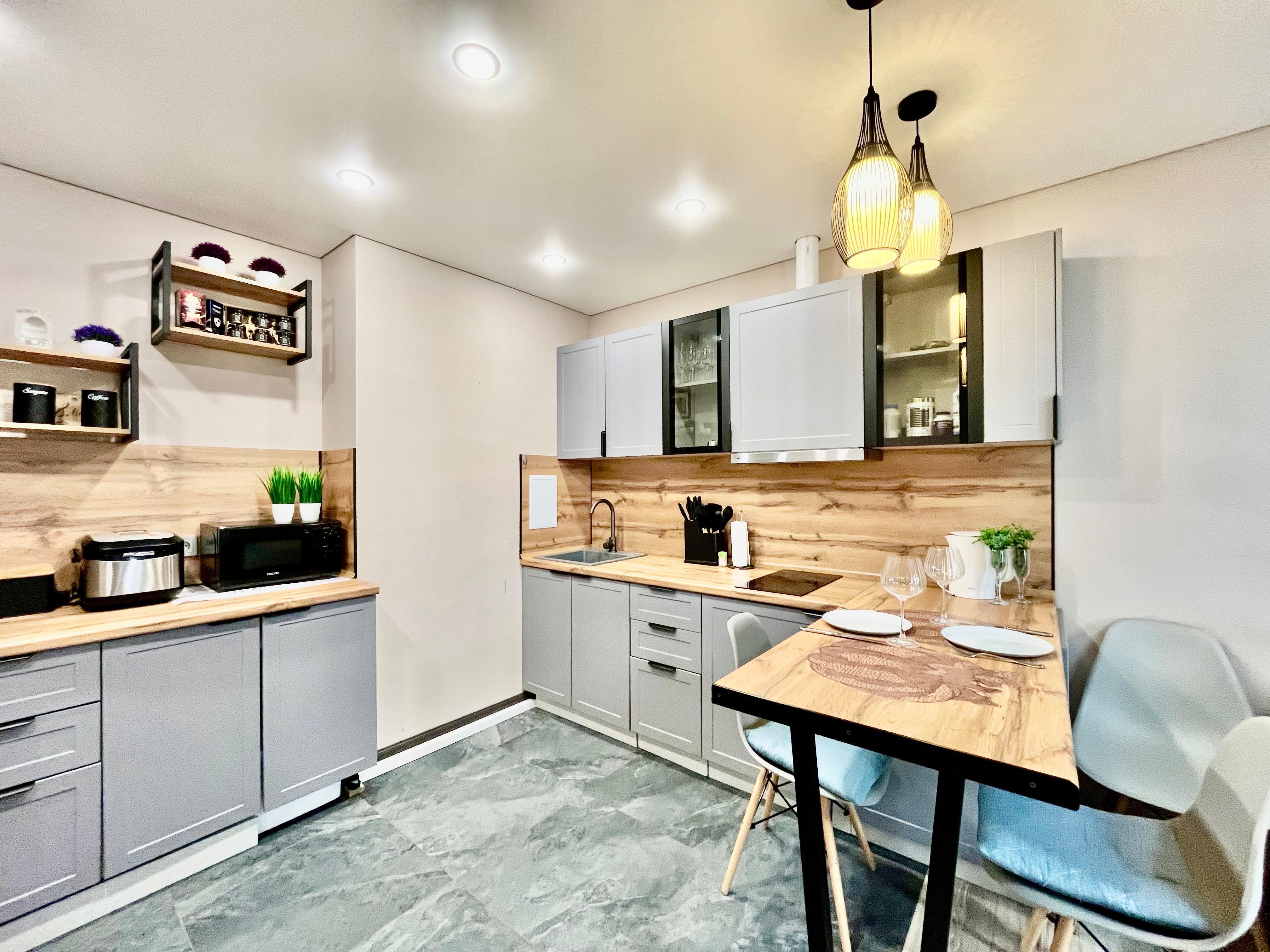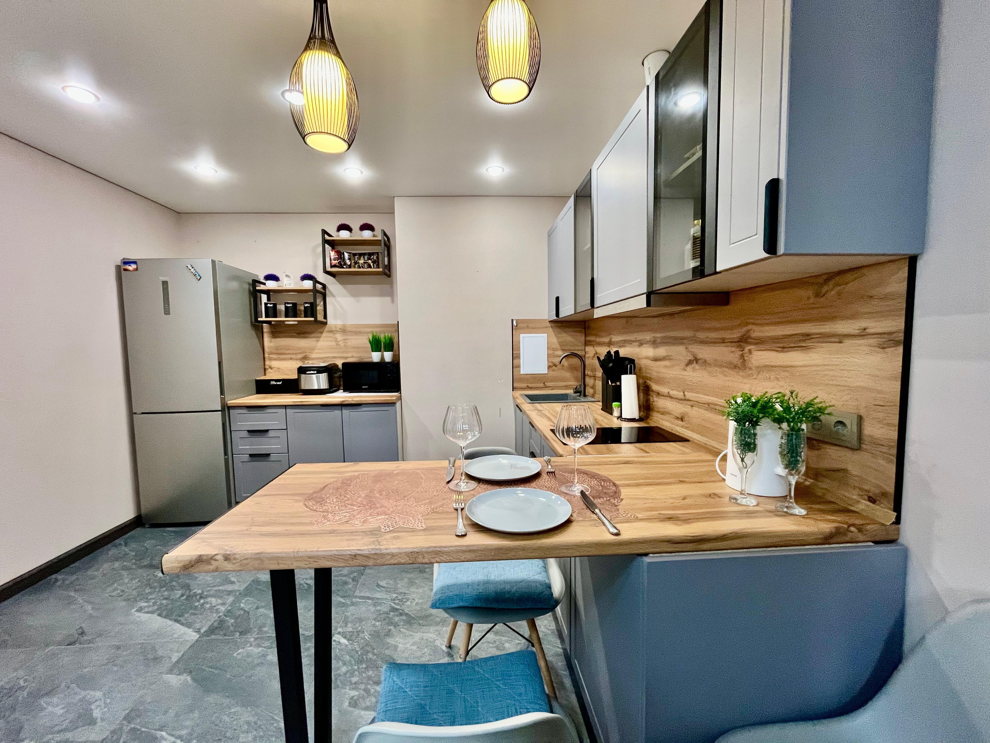 Комплектация: туалетные принадлежности (гель для тела, шампунь, тапочки, зубные щетки и пасты, туалетная бумага, капсулы для стирки), чай, конфеты, двуспальная кровать, двуспальный диван, постельное белье, полотенца, телевизор, варочная поверхность, микроволновая печь, холодильник, стиральная машина, кондиционеры, туалетный столик, набор посуды и столовых приборов, чайник, фен, утюг, глад. доска, сушилка, интернет.