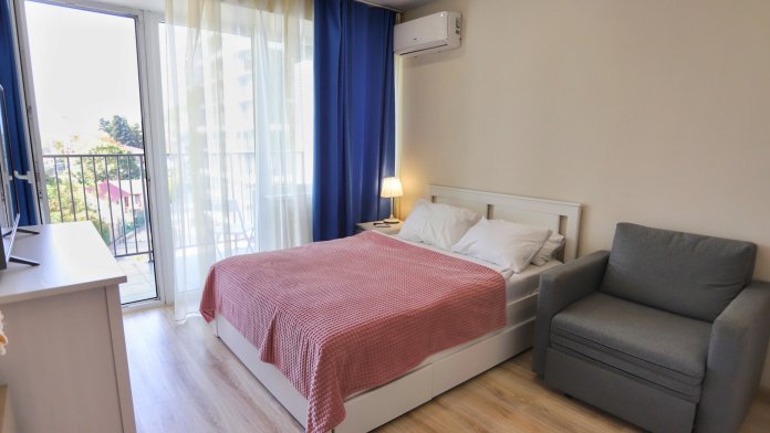 Квартира укомплектована всем необходимым для комфортного проживания. Из окон открывается прекрасный вид на море и горы.