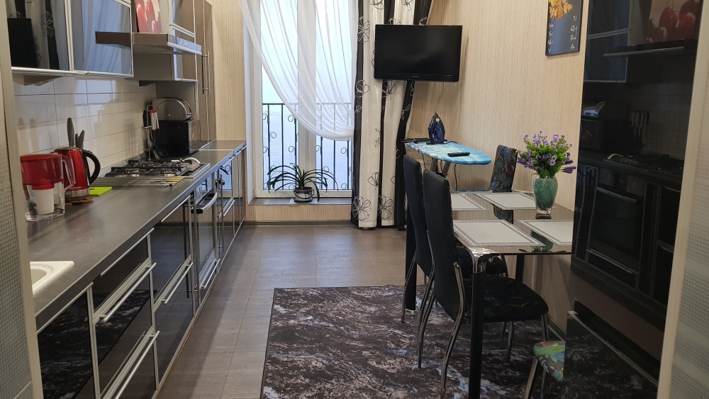 В квартире есть всё для комфортного проживания и отдыха. Предоставляются постельные принадлежности. В кухне есть газовая плита, холодильник, микроволновая печь, посуда. Утром, перед прогулкой по историческим местам города, можно сварить себе ароматный кофе в турке. Имеется утюг, гладильная доска, пылесос, фен. В каждой комнате и на кухне современные телевизоры, подключено кабельное телевидение со множеством каналов. В квартире бесплатный Wi-Fi.