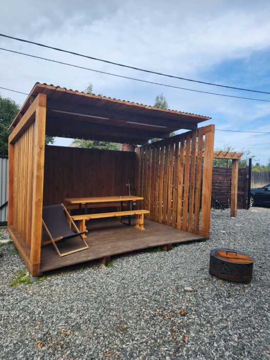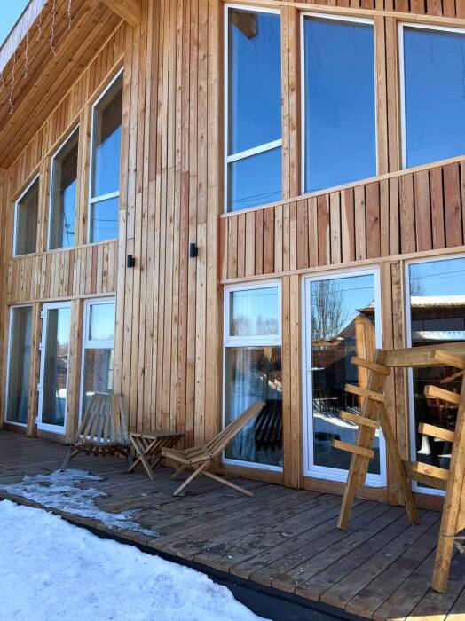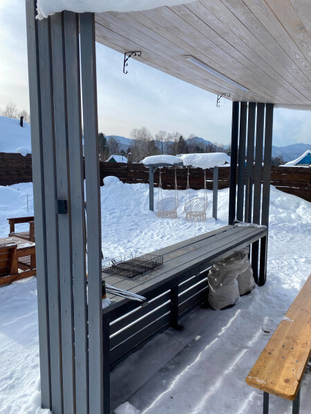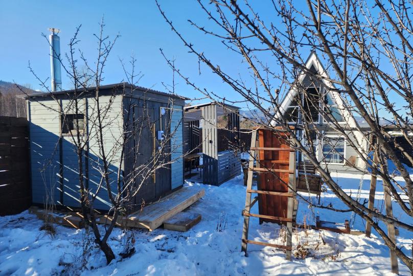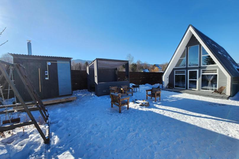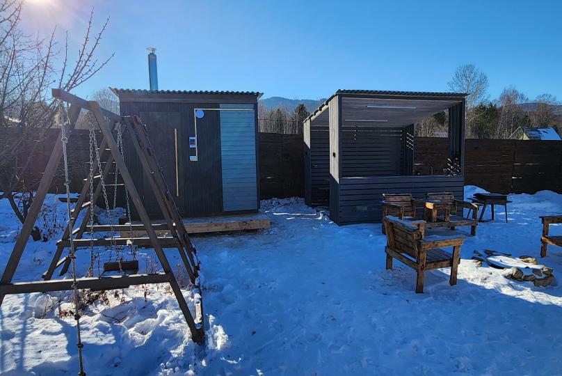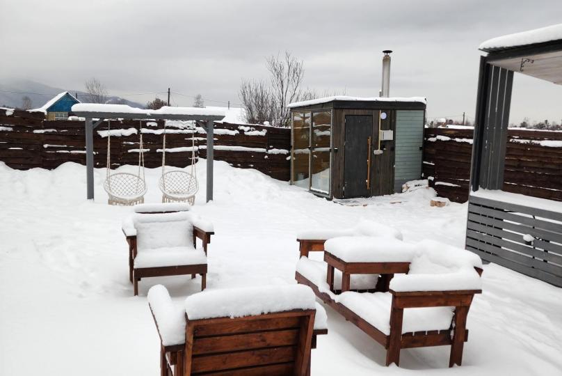 Закрытая территория с парковкой для гостей. Возле каждой половины дома расположены мангальная зона с беседкой и костровая чаша. На территории Chilla Villa Baikal есть возможность арендовать панорамную и закрытую баню.
