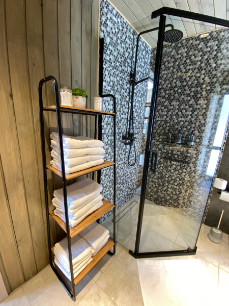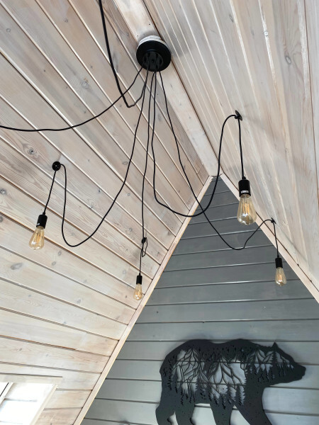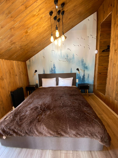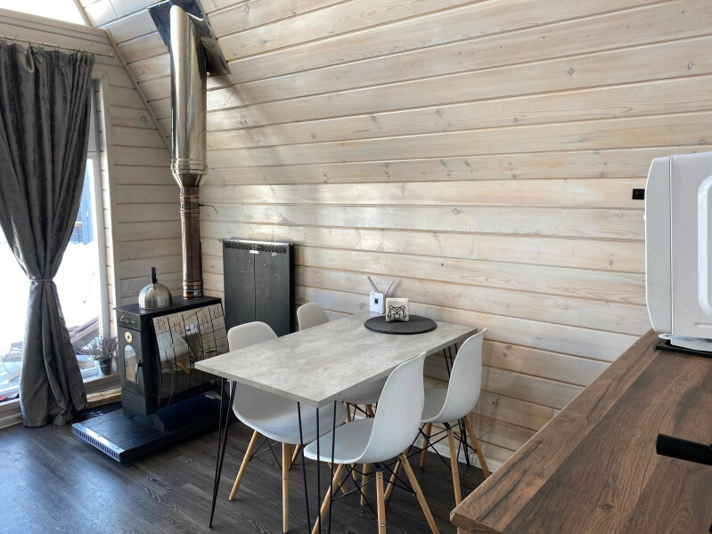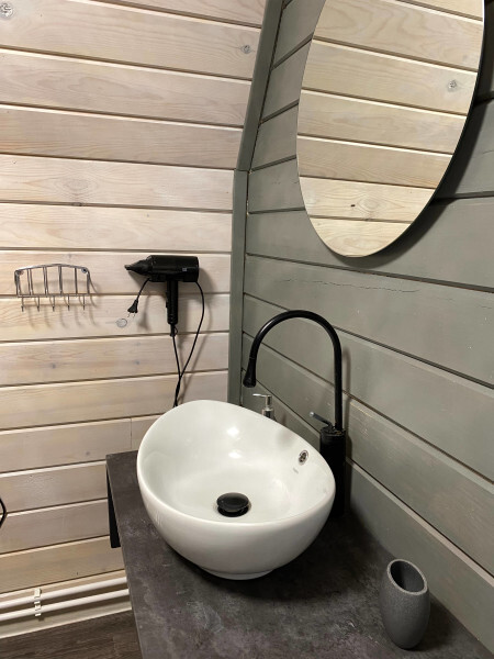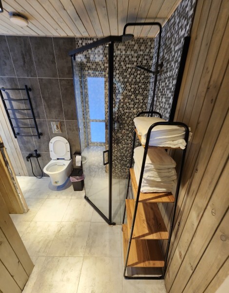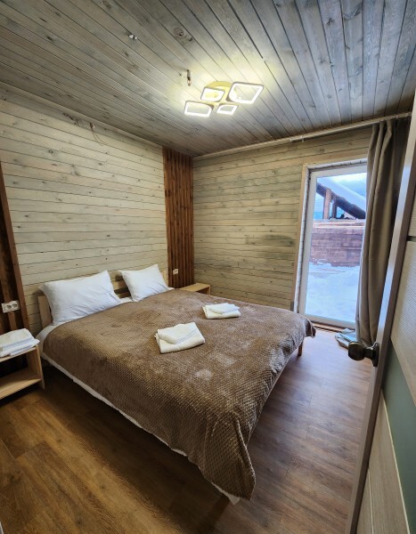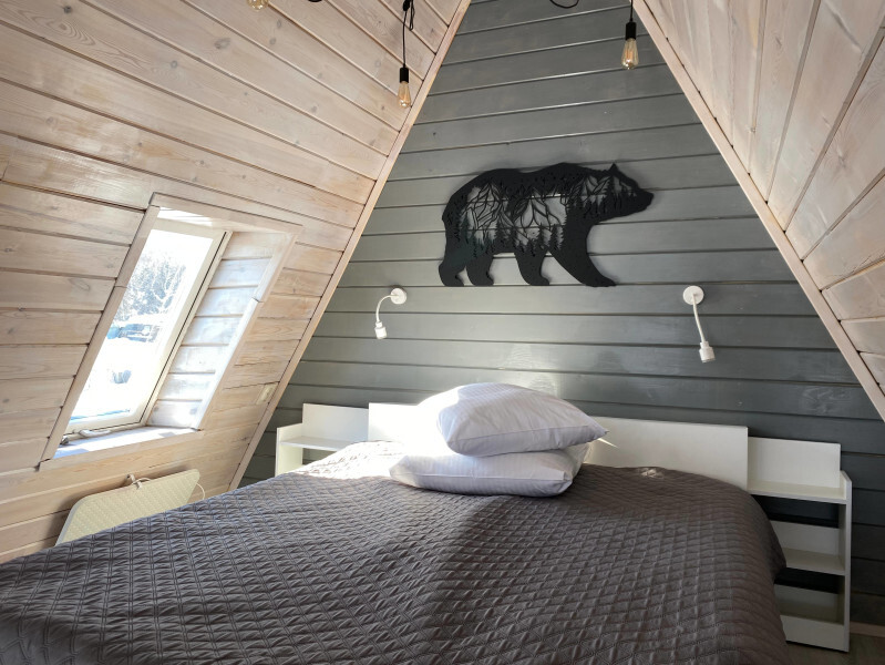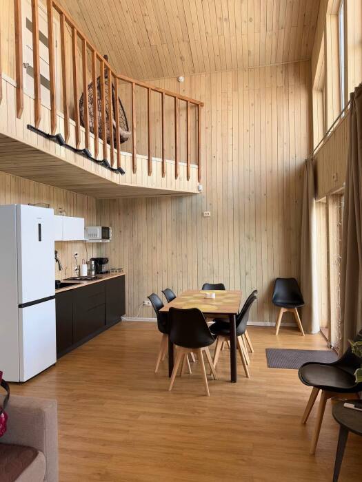 В каждом доме есть: 3 спальни - 2 двуспальные кровати и 2 одноместные + диван для двоих в гостиной; собственный санузел с душем и туалетом на 1 этаже; санузел на втором этаже; полноценная кухня-гостиная; проектор с проекцией до 240см; холодильник, микроволновка; плита и кухонная посуда; кофе машина с зернами; электрический чайник; качественный мангал на улице; фен; посудомойка.