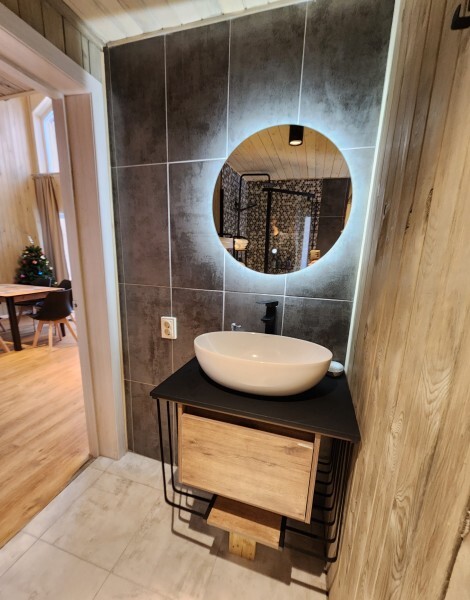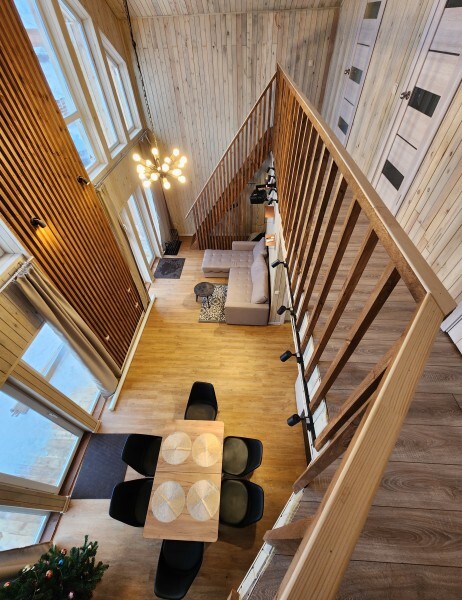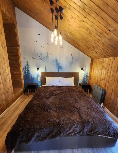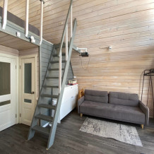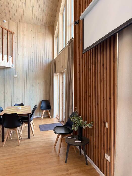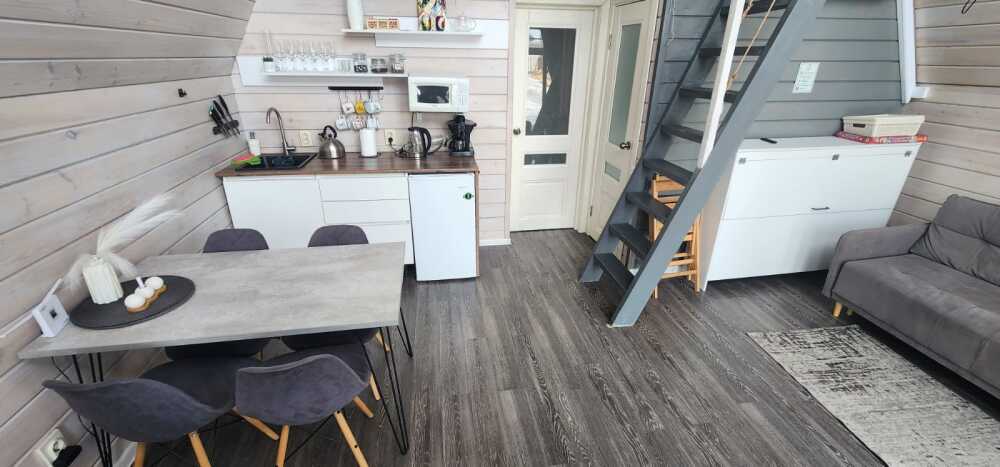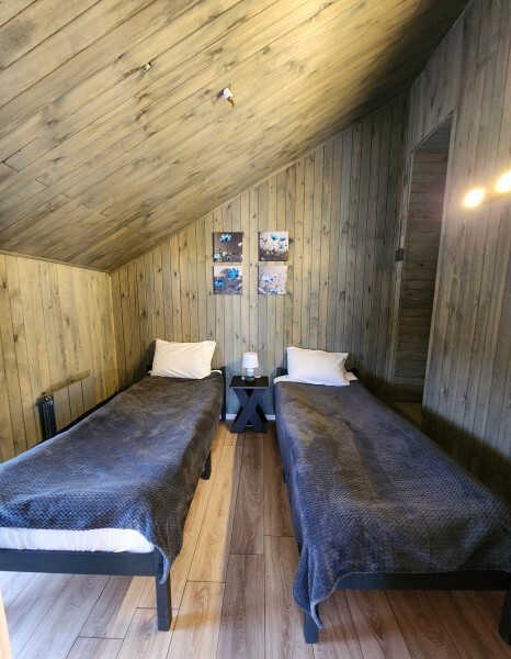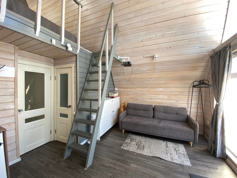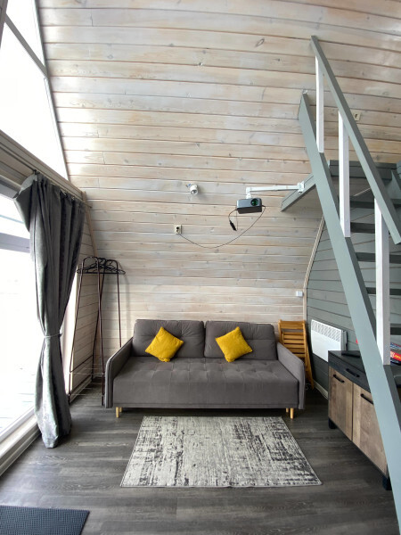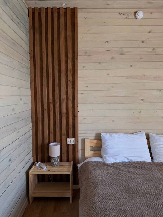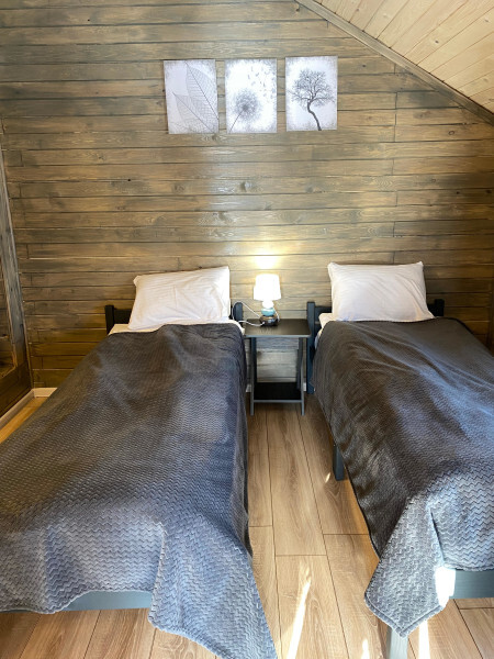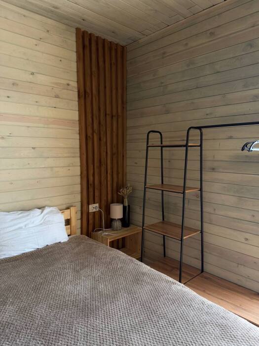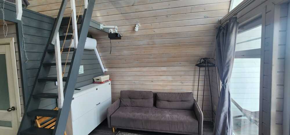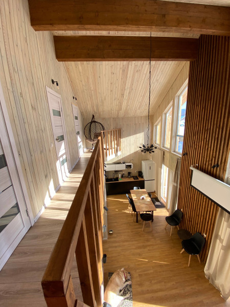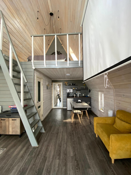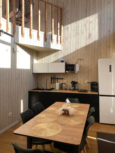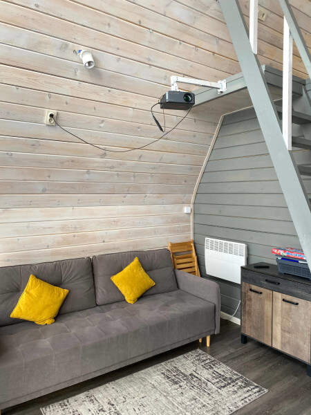 В случае необходимости модно арендовать вторую половину дома и общая вместимость составит 11 мест. В доме есть: двуспальная кровать на 2 этаже, диван в гостиной и кресло-кровать на 1 гостя, собственный санузел с душем и туалетом, полноценная кухня-гостиная, проектор с проекцией до 240 см, холодильник, микроволновка, плитка и кухонная посуда, кофе машина с зернами; электрический чайник, качественный мангал на улице с беседкой и костровой зоной, фен.