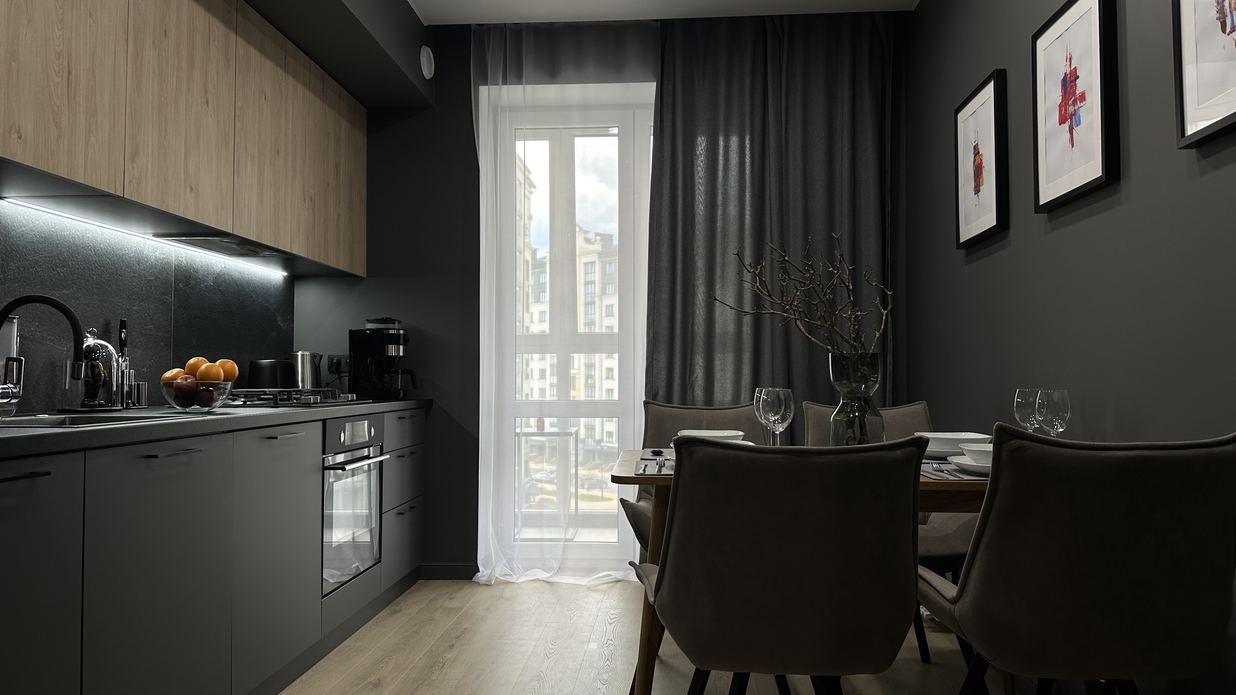 Квартира с дизайнерским ремонтом в 7 минутах ходьбы прогулочным шагом до моря и Куршской косы. Красивый современный ЖК с видом на двор с фонтаном и спортивной площадкой. Бесплатная парковка. В шаговой доступности «SPAR», «Виктория», «Пятерочка». Развитая инфраструктура: магазины, кафе, салон красоты. Апартаменты находится в 5 минутах от старинного парка с озером. ЖК расположен при въезде в национальный парк Куршская коса, где можно погулять и насладится невероятным воздухом и его природой.