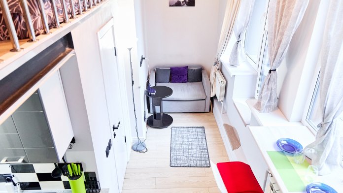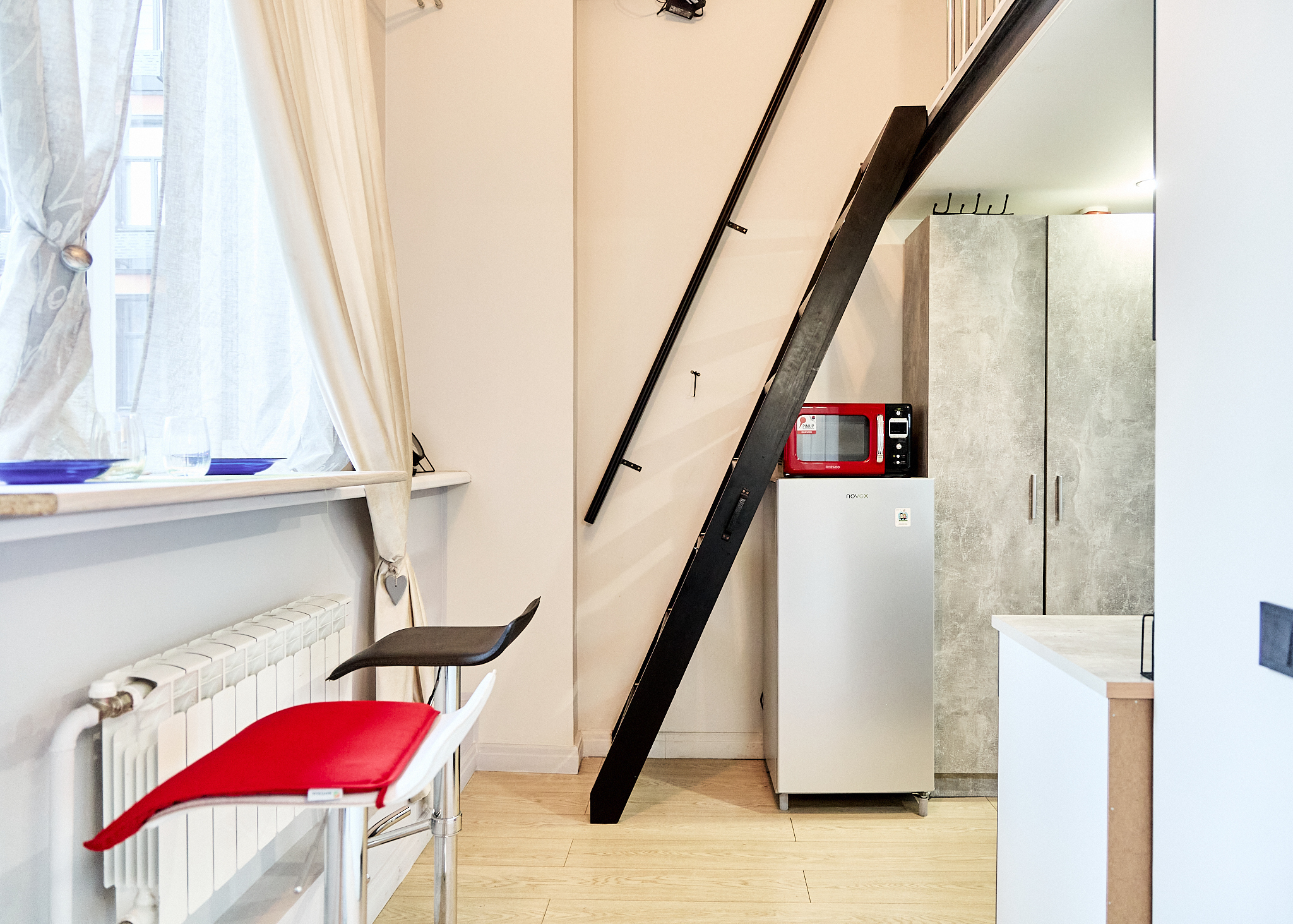 Уютная двухуровневая студия, оборудованная всем необходимым для комфортного проживания.