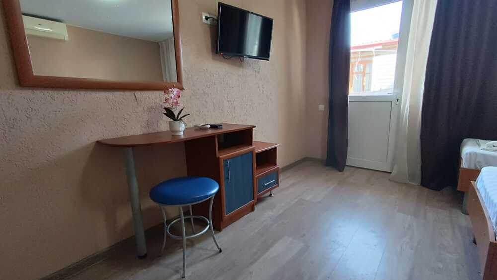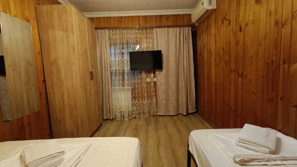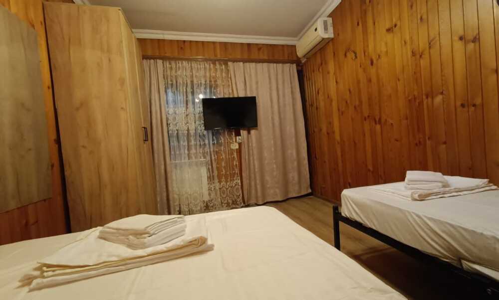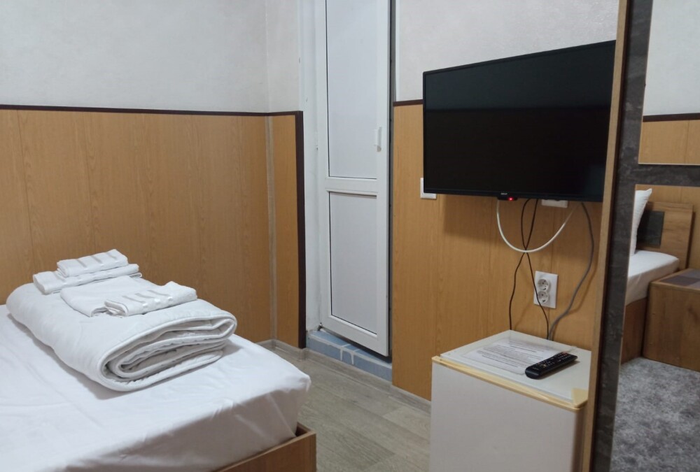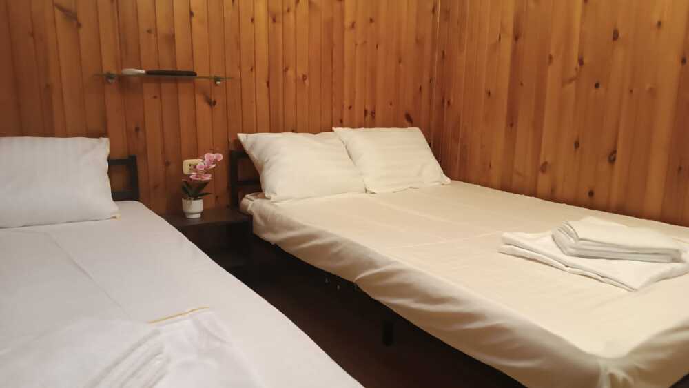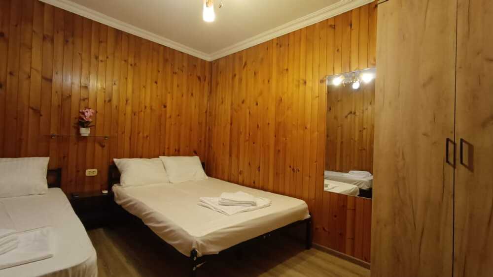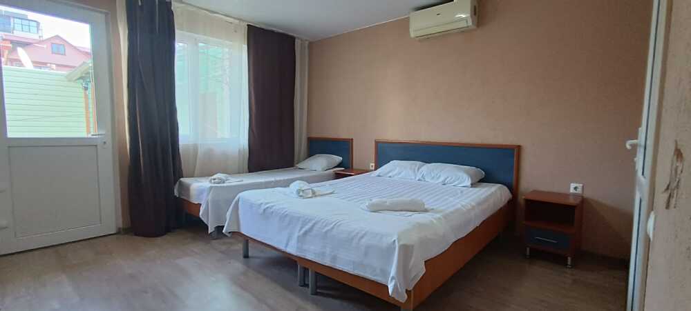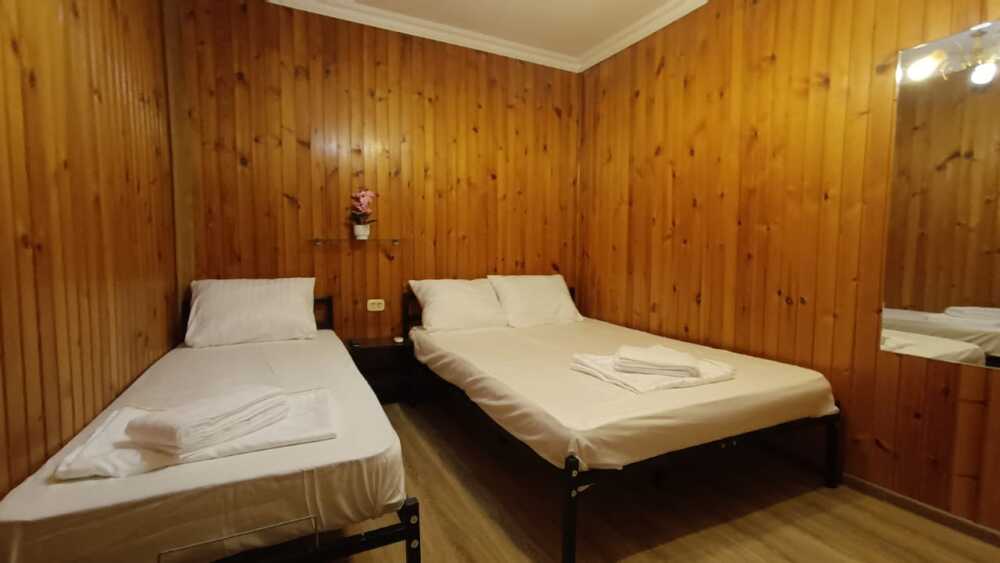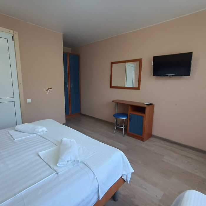 3-местный номер. Состоит из: 1 двуспальная кровать, 1 односпальная кровать, туалет, душ, кондиционер, холодильник (не во всех номерах), телевизор, Wi-Fi.