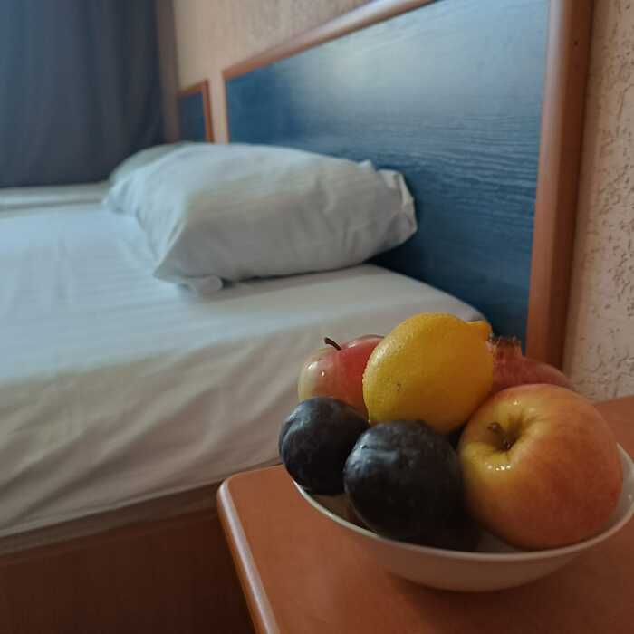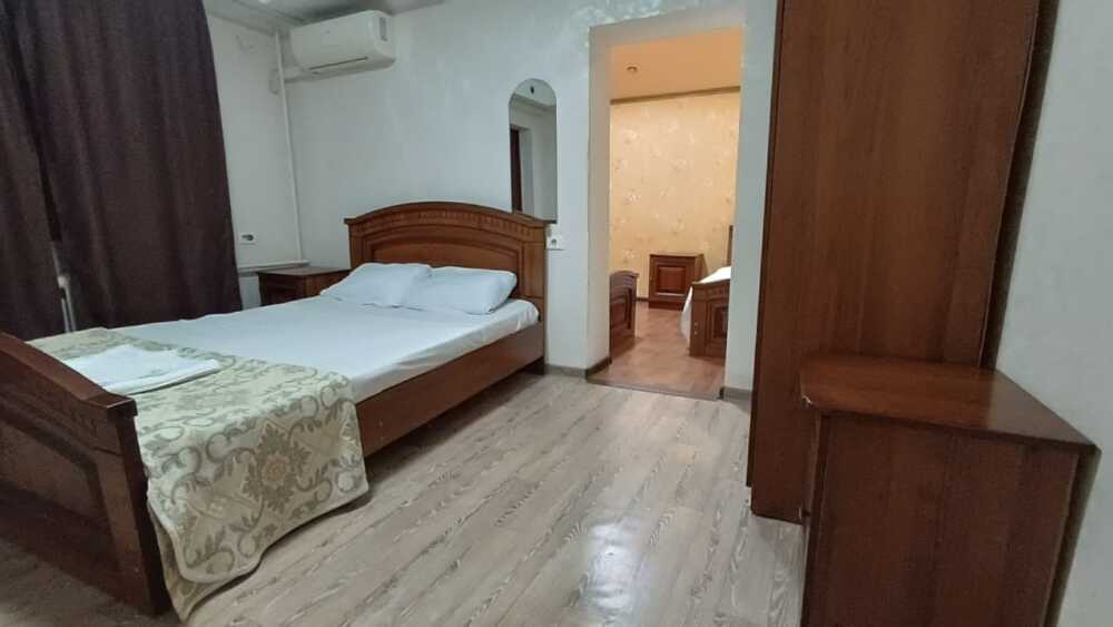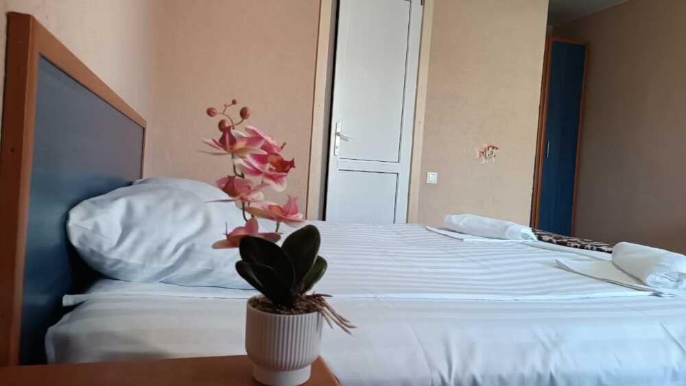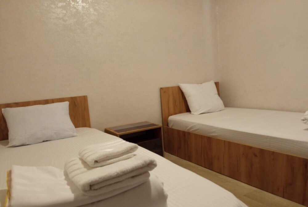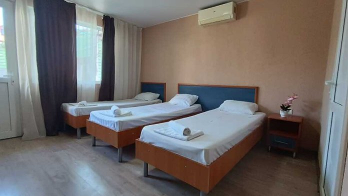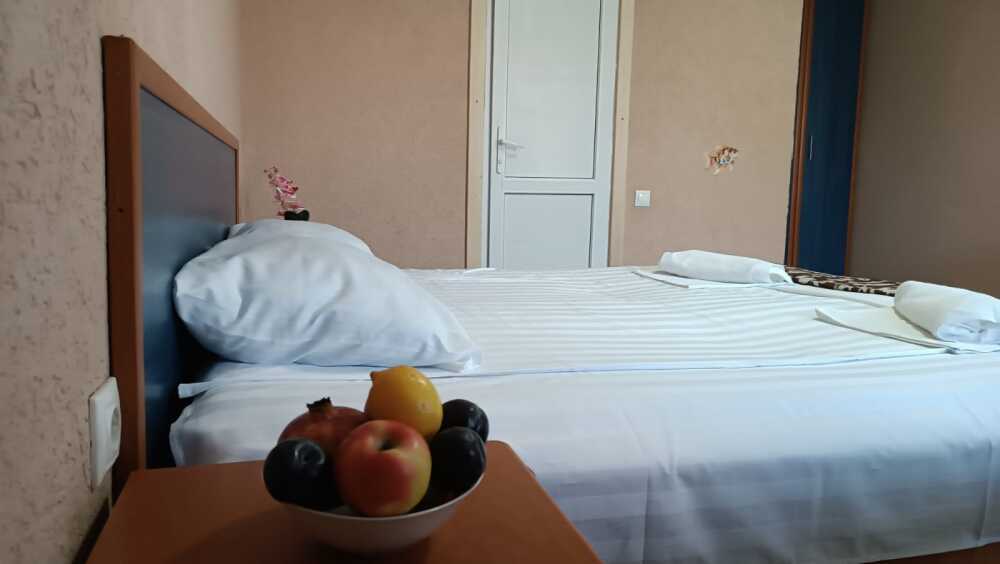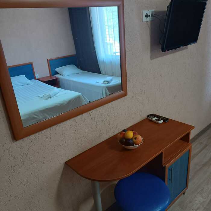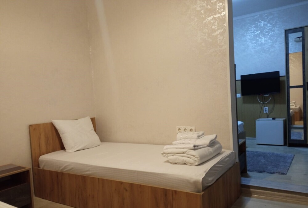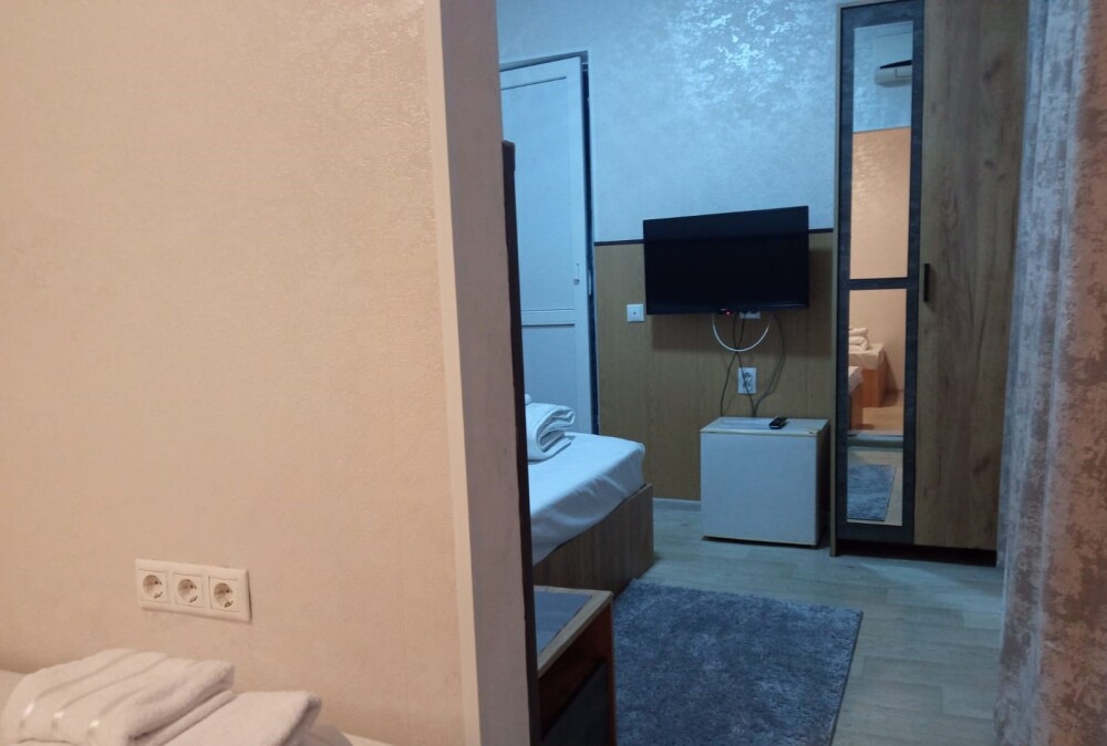 3-местный номер. Состоит из: 1 двуспальная кровать, 1 односпальная кровать, туалет, душ, кондиционер, холодильник (не во всех номерах), телевизор, Wi-Fi.