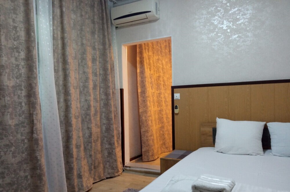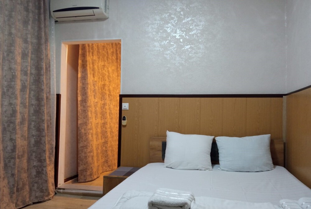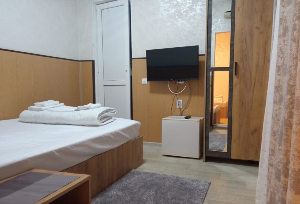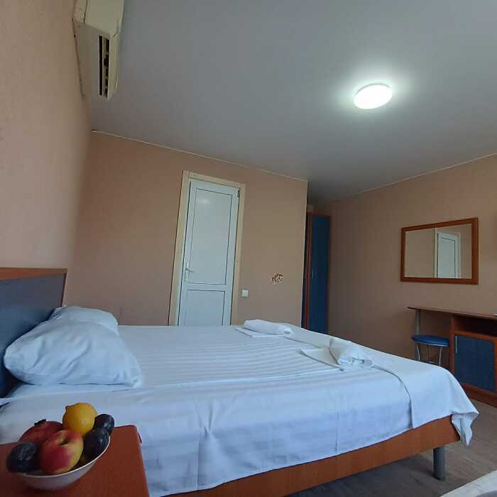 Стандартный 2-х местный номер. В комнате: 1 двуспальная кровать, туалет, душ, кондиционер, холодильник (не во всех номерах), телевизор, Wi-Fi.