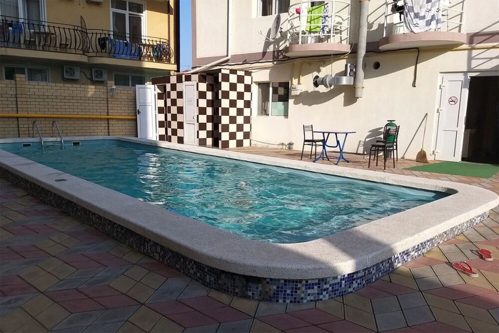 Отель располагает благоустроенной территорией, выложенной аккуратной плиткой.