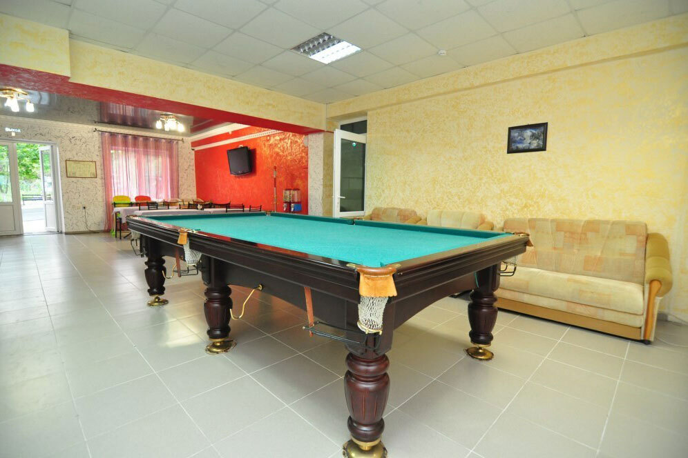 К услугам гостей оборудованная зона отдыха с шезлонгами, окружающая летний бассейн. Любители бильярда не останутся без любимой игры. На детской игровой площадке оборудованы безопасные горки, качели и другие игровые атрибуты. Родители, приезжающие на отдых с совсем маленькими детишками, могут воспользоваться стульчиками для кормления, имеющимися в столовой, а также обратиться в ресепшн и получить в свое распоряжение детскую кроватку. В столовой базы отдыха, работающей с 8:00 до 22:00, гостям предлагают разнообразное, вкусное и недорогое меню, в том числе и для детей.