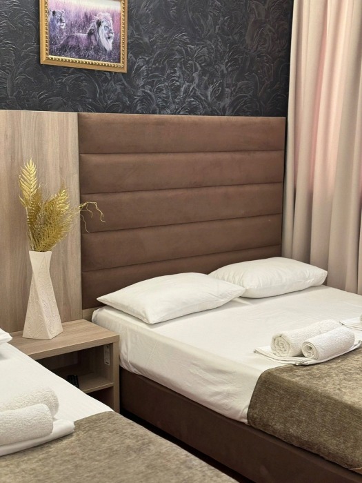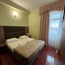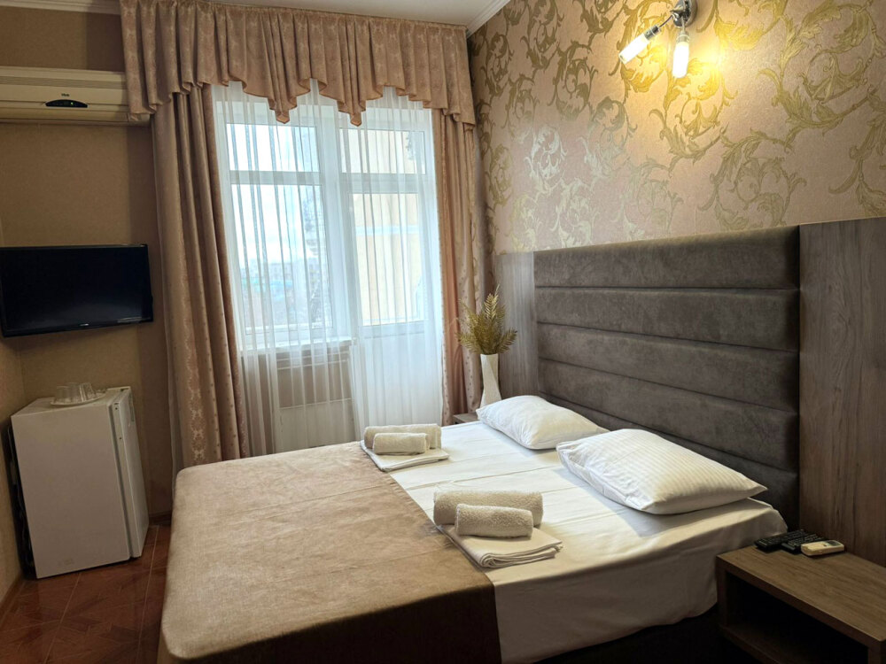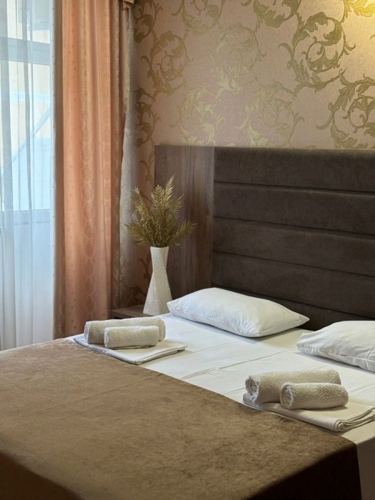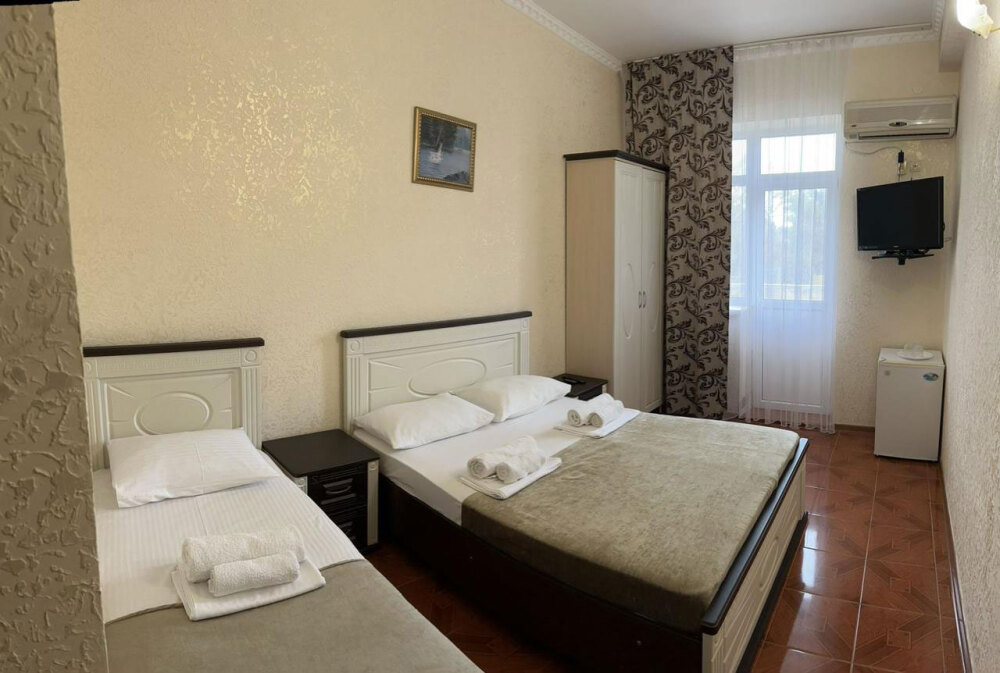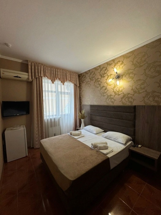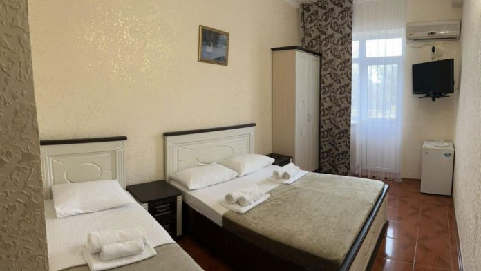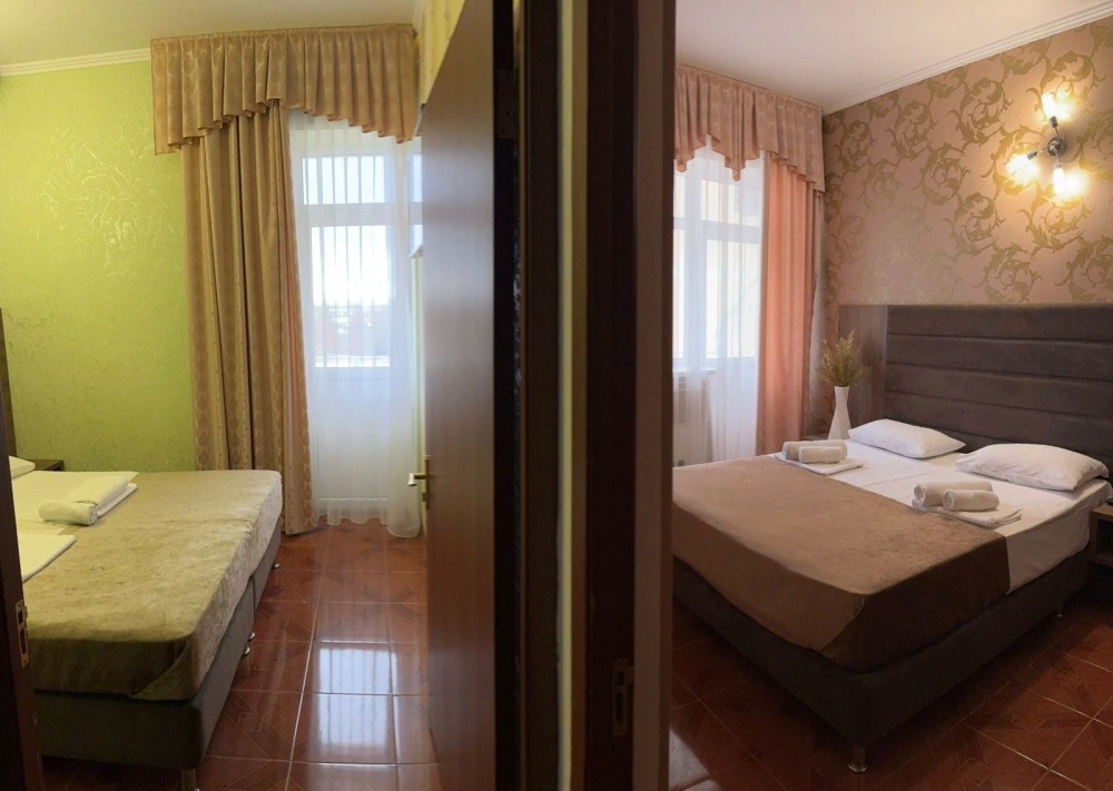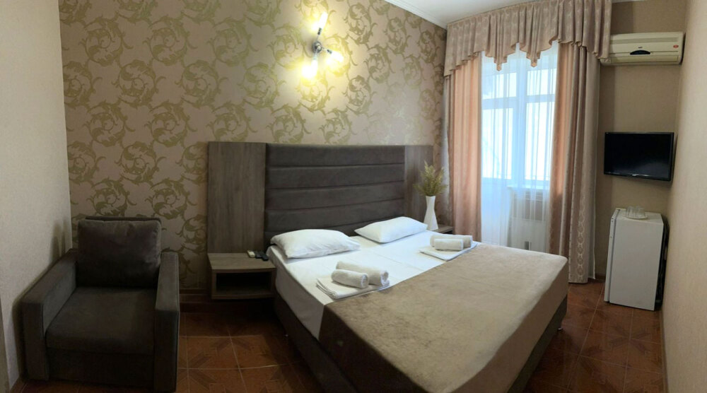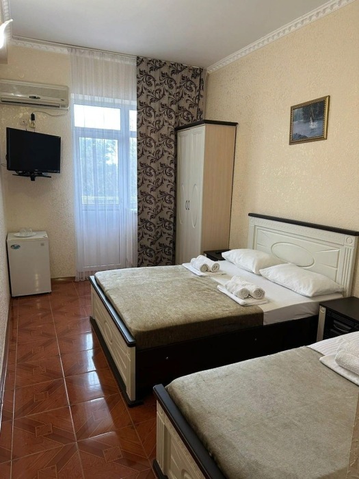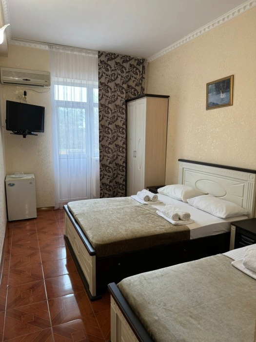 Гостям предлагаются для размещения комфортабельные 1-комнатные и 2-комнатные номера с балконами, оборудованные всем необходимым для комфортного проживания: удобной современной мебелью, кондиционерами, холодильниками, жк-телевизорами, бесплатным Wi-Fi доступом в интернет на всей территории. Смена постельного белья и полотенец производится 1 раз в 4 дня.