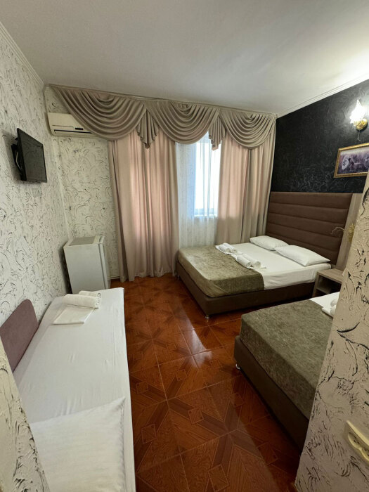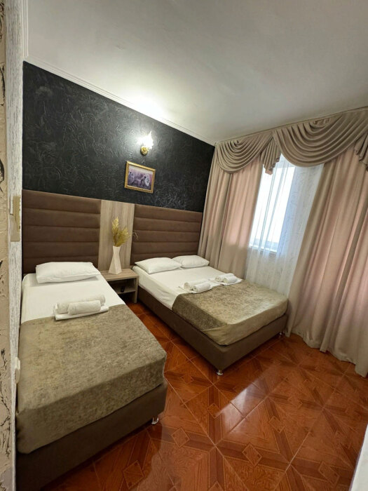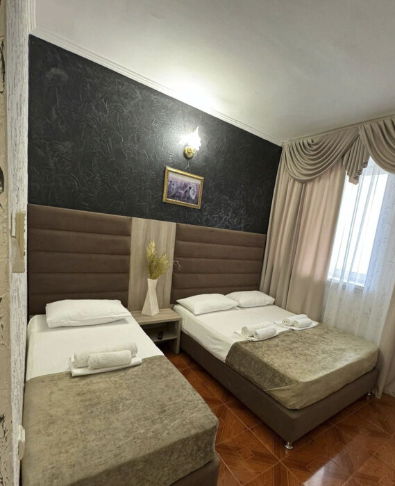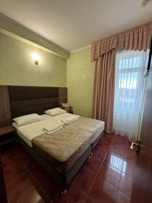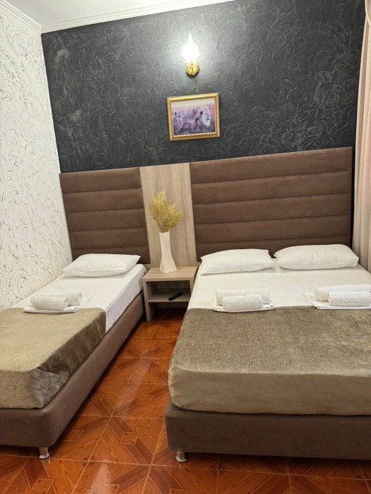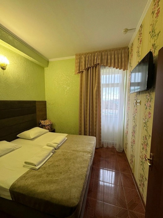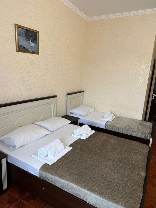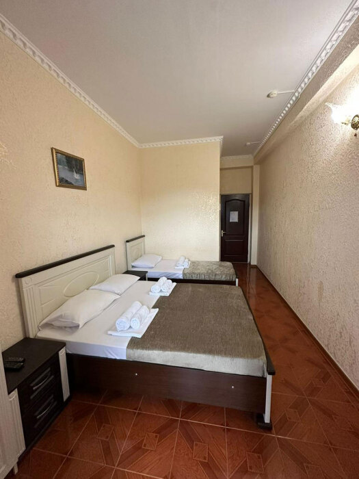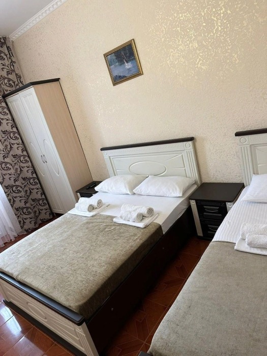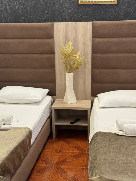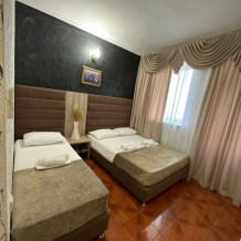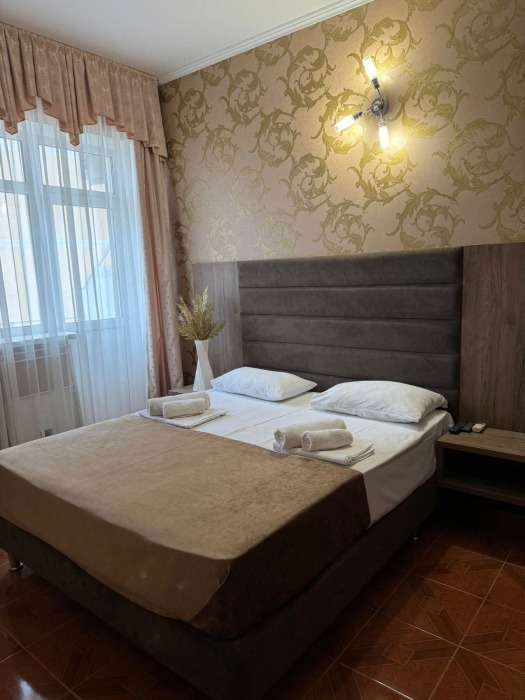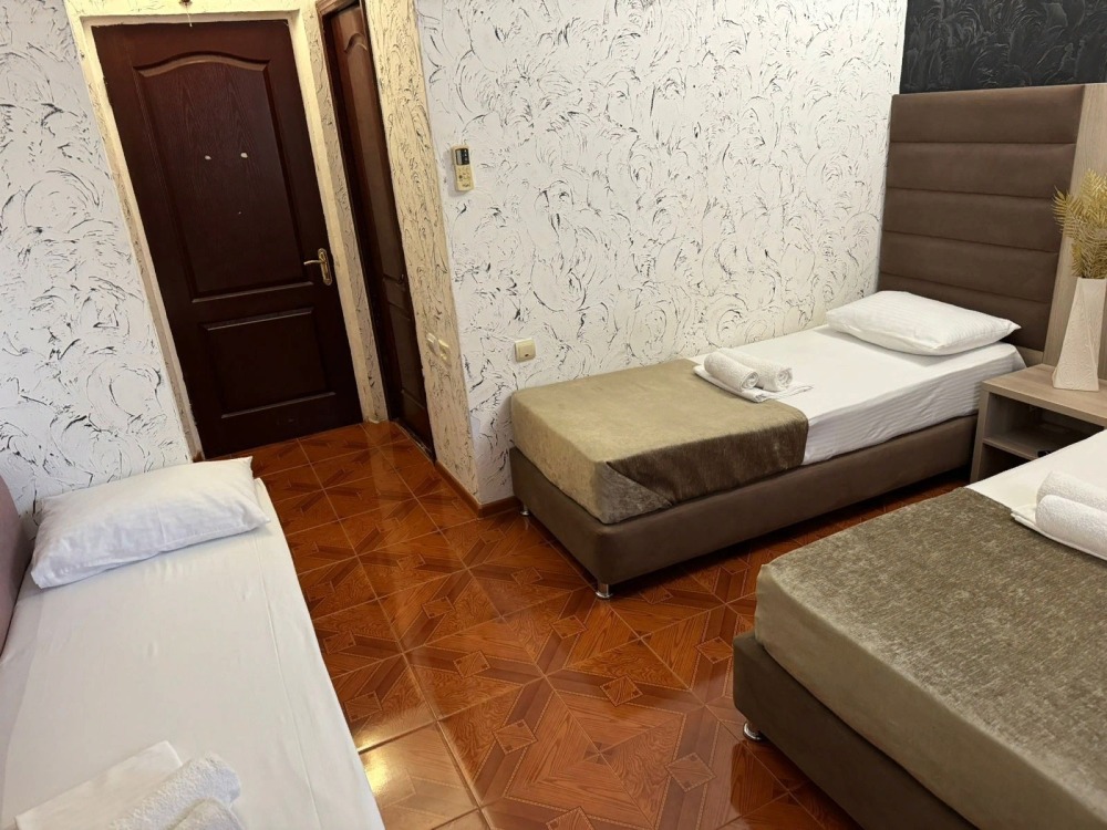 Гостям предлагаются для размещения комфортабельные 1-комнатные и 2-комнатные номера с балконами, оборудованные всем необходимым для комфортного проживания: удобной современной мебелью, кондиционерами, холодильниками, жк-телевизорами, бесплатным Wi-Fi доступом в интернет на всей территории. Смена постельного белья и полотенец производится 1 раз в 4 дня.