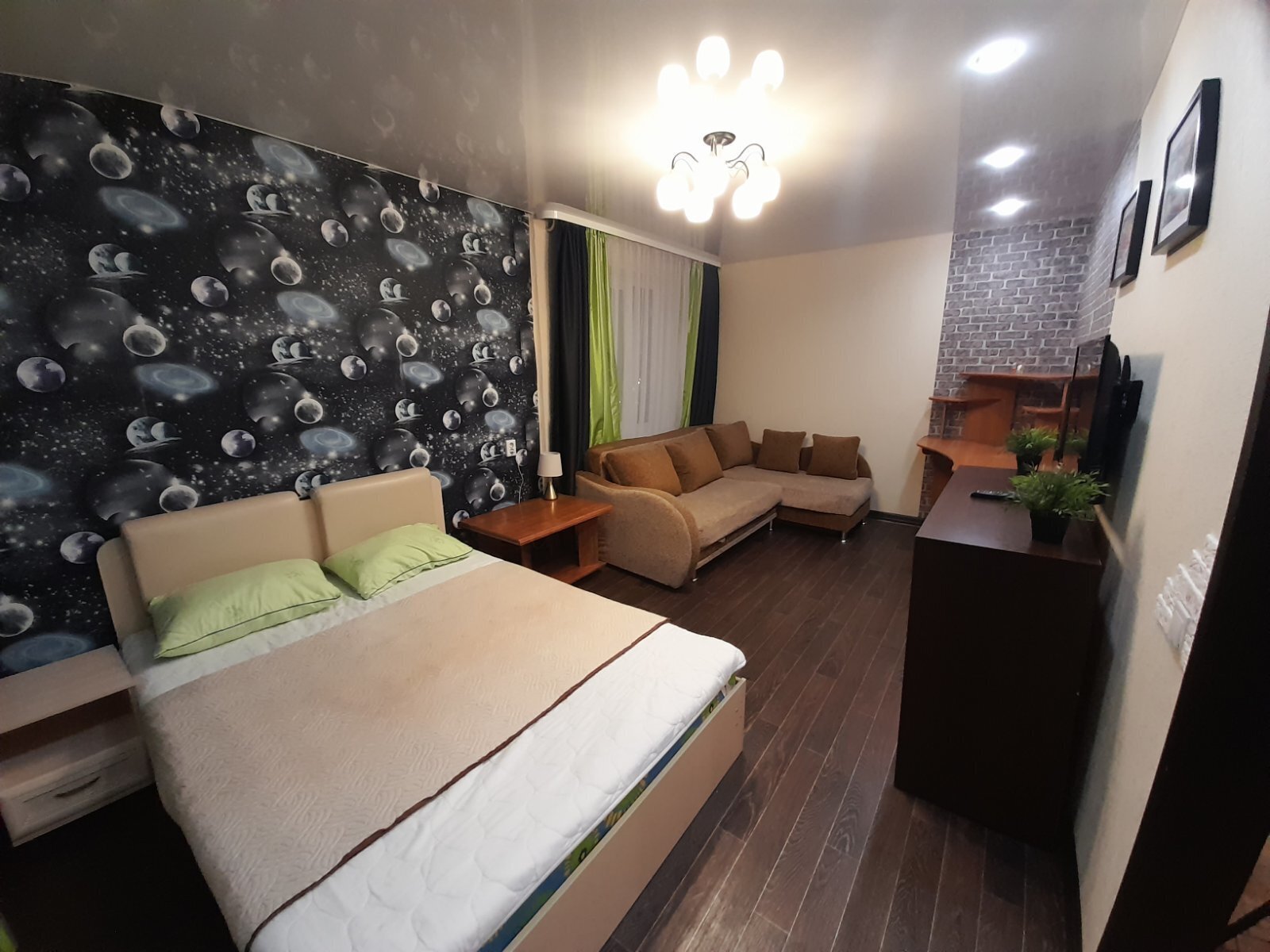 Хороший ремонт, стеклопакеты, ламинат. Есть вся необходимая мебель для комфортного проживания: двухспальная тахта, мягкая мебель, бытовая техника, санузел «под ключ». Стиральная машина, плазменный ТВ, посуда, всё необходимое для комфортного проживания.