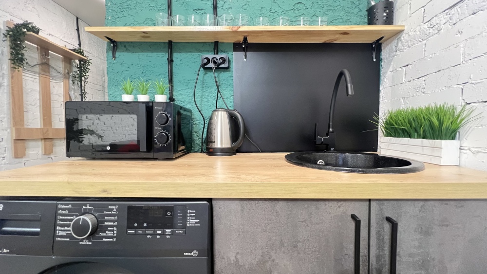 Квартира оснащена всем, что может потребоваться для комфортного проживания: двуспальная кровать, раскладной диван, постельное белье, полотенца, туалетные принадлежности, посуда, фен, стиральная машина, утюг, гладильная доска, Wi-Fi, телевизор.