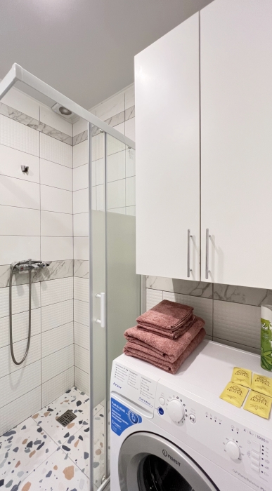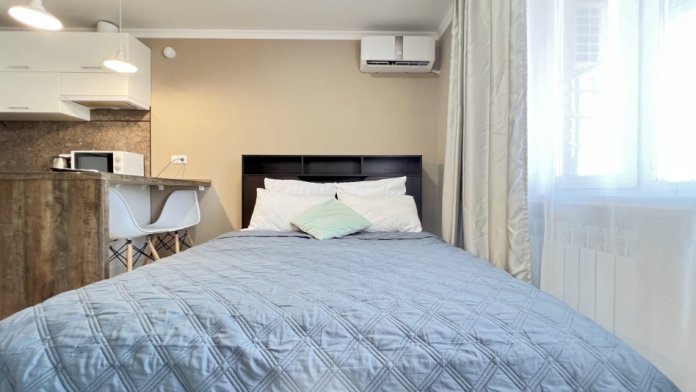Квартира оснащена всем, что может потребоваться для комфортного проживания: двуспальная кровать, раскладной диван, постельное белье, полотенца, туалетные принадлежности, посуда, фен, стиральная машина, утюг, гладильная доска, Wi-Fi, телевизор.