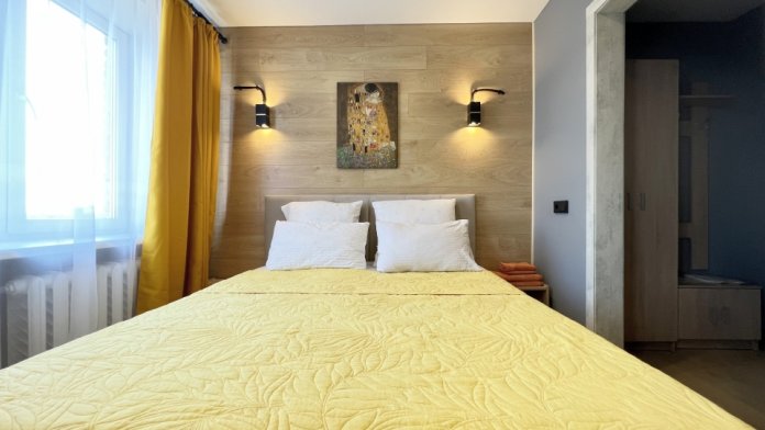 Квартира оснащена всем, что может потребоваться для комфортного проживания: двуспальная кровать, раскладной диван, постельное белье, полотенца, туалетные принадлежности, посуда, фен, стиральная машина, утюг, гладильная доска, Wi-Fi, телевизор.