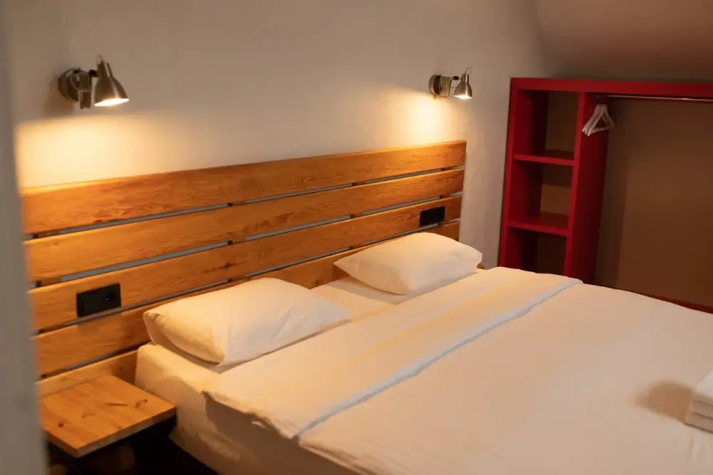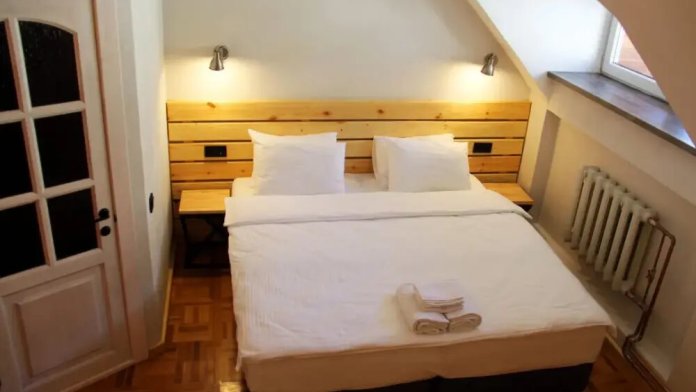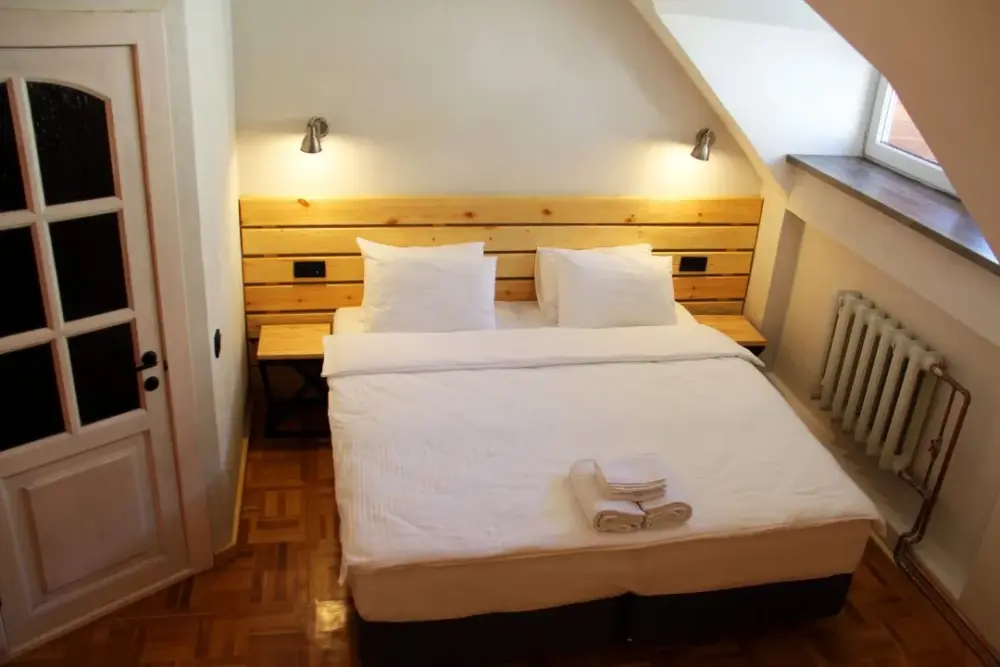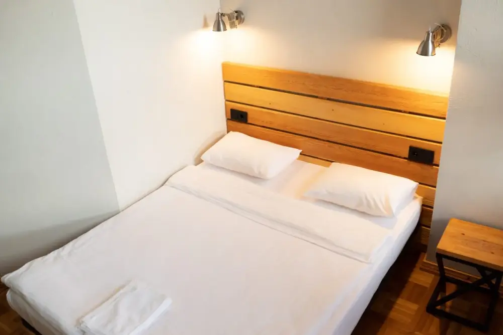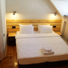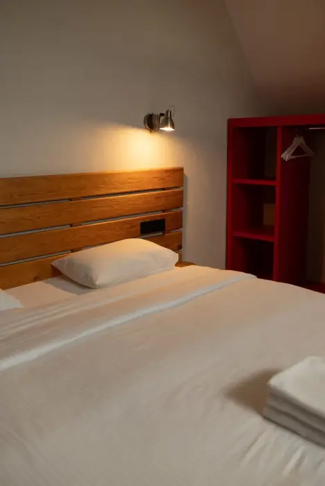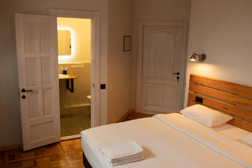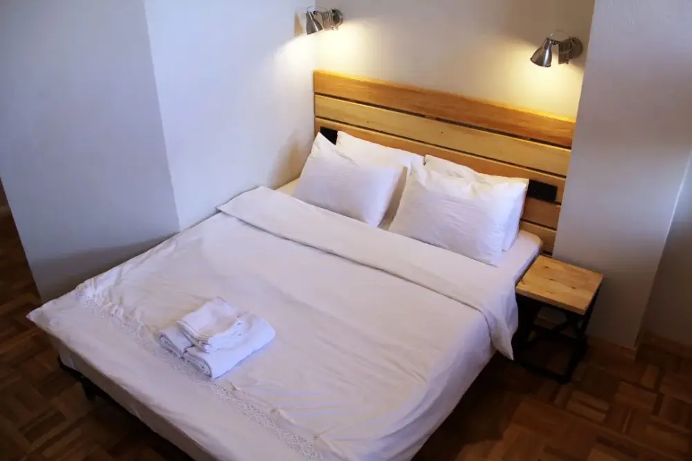 В номере установлена 1 двуспальная кровать или 2 односпальные.