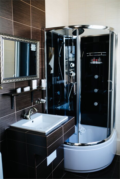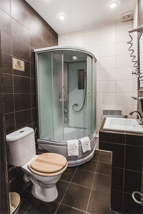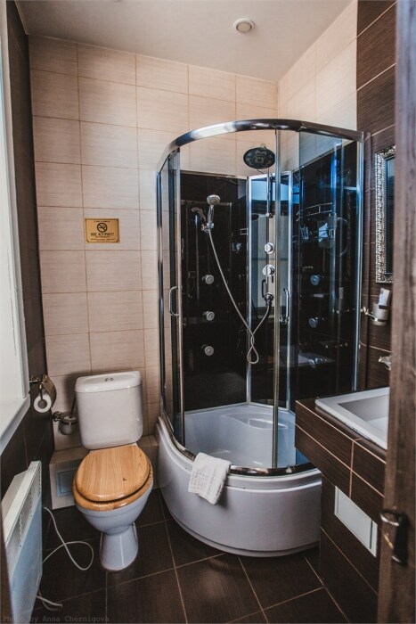 С первого по третий этажи расположены комфортабельные номера с возможностью доступа в Интернет (Wi-Fi), в которых имеются удобные кровати, телевизор, телефон, сан.узел с душевой кабиной, а также фен, халат и другие принадлежности индивидуального пользования.