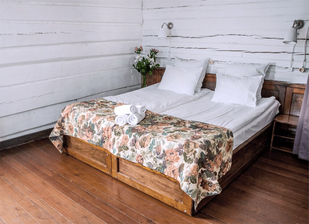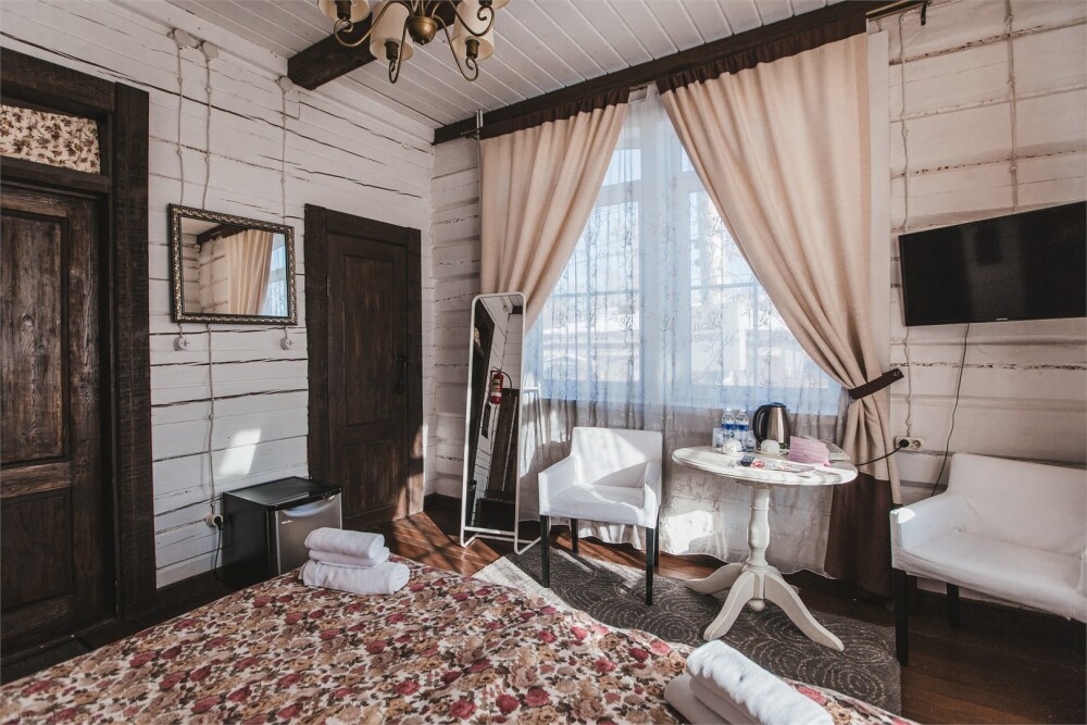 Прекрасный номер в стиле «Прованс», созданный для Вашего комфорта и уюта. Обильное естественное освещение, оригинальные декоративные элементы и атмосфера деревянного дома помогут Вам полностью ощутить дух Сибири.