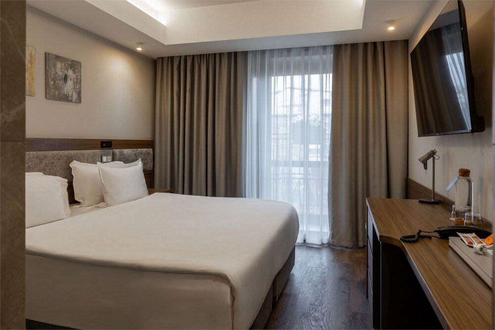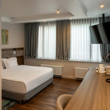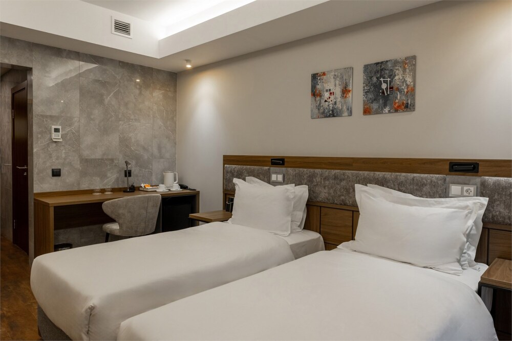 Беспроигрышный вариант по соотношению качества, комфорта и цены. В номере предусмотрено два варианта расстановки кроватей с ортопедическими матрасами - одна большая King Size (180х200см) или две раздельные (90х200см). Подходит как для бизнес-путешественников, так и туристов, а также для семей.
