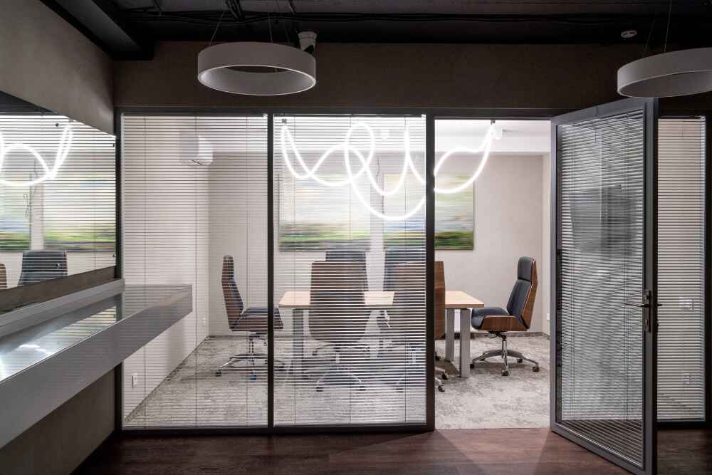 Комната переговоров идеально подойдет для совещаний, презентаций, коворкинга, работы небольших групп до 8 человек. Здесь созданы идеальные условия для встречи: комфортные кресла, стол со встроенными розетками, Wi-Fi, регулируемое освещение. Возможно бронирование на несколько часов или на целый день.