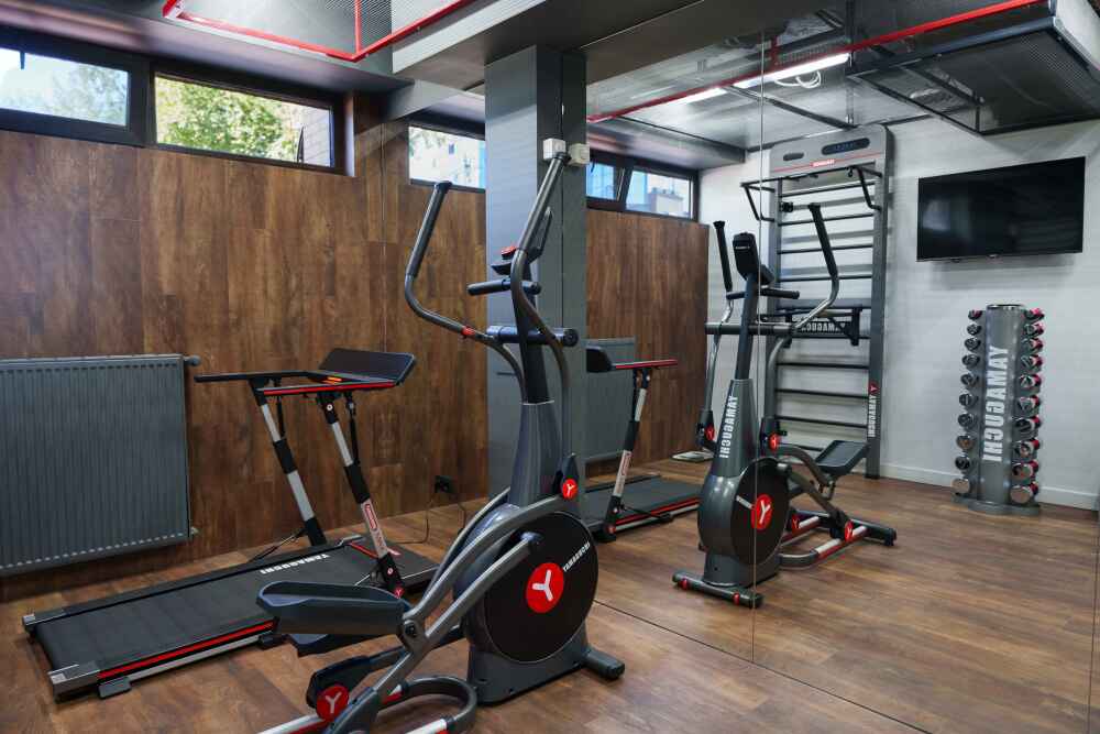 В тренажерном зале отеля Вы сможете продолжить привычные спортивные тренировки на качественном спортивном оборудовании и инвентаре бренда Yamaguchi. В распоряжении гостей кардиотренажеры, беговая дорожка, гантели, коврик для йоги, спортивные весы и прочее.