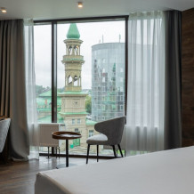 Настоящий комфорт – номер высшей категории Джуниор Сюит Бизнес площадью 32 м². Из окна открывается вид на историческую часть Иркутска.