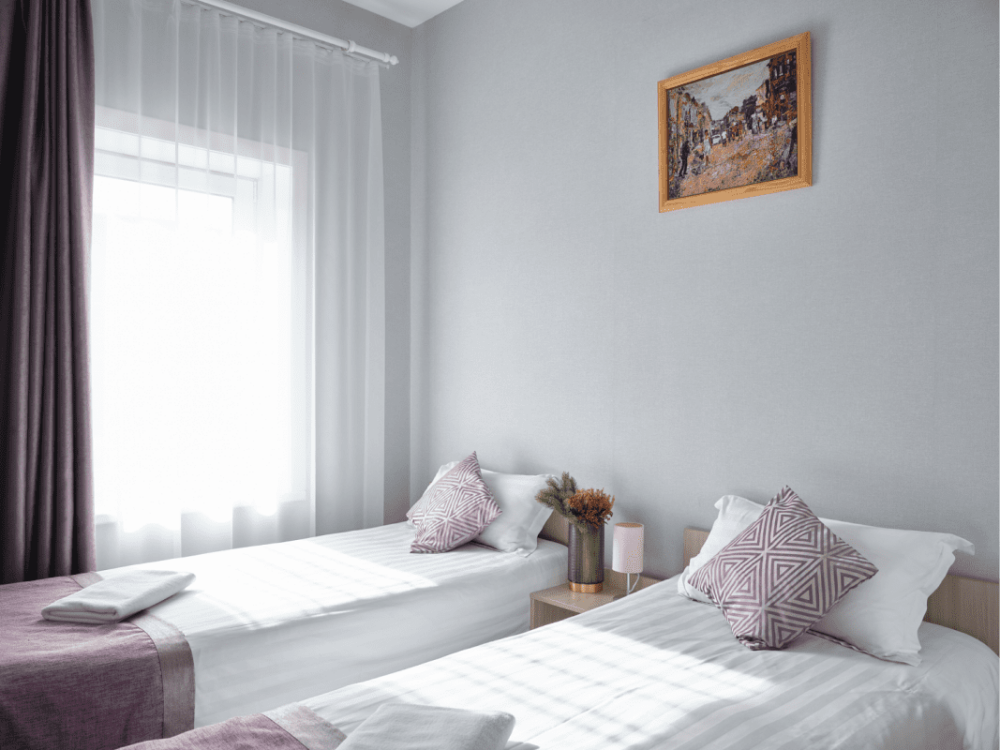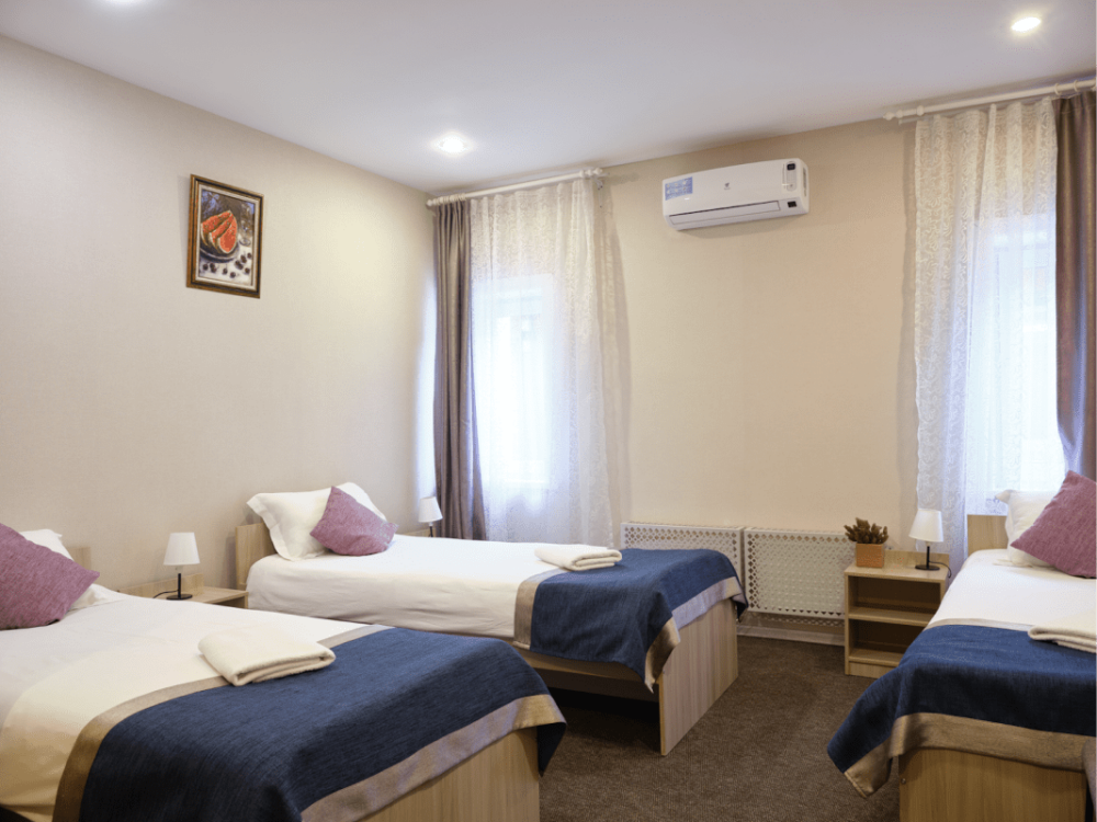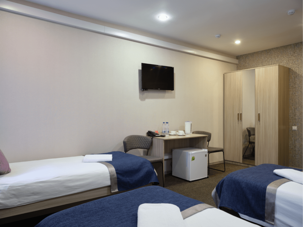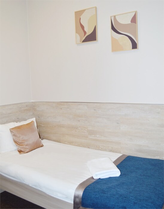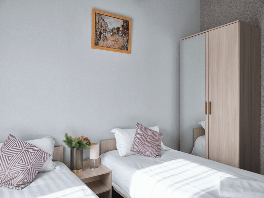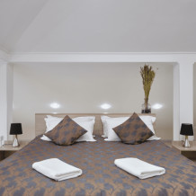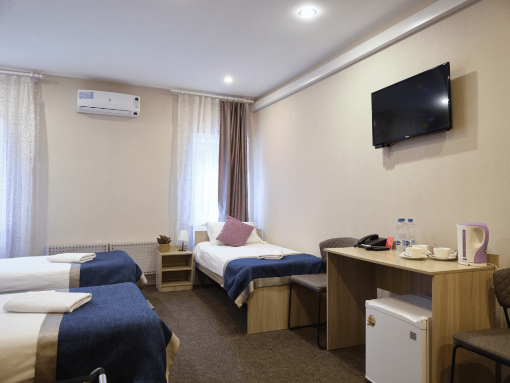 Предусмотрено размещение гостей на одной отдельной кровати и одной большой, либо двух раздельных кроватях.