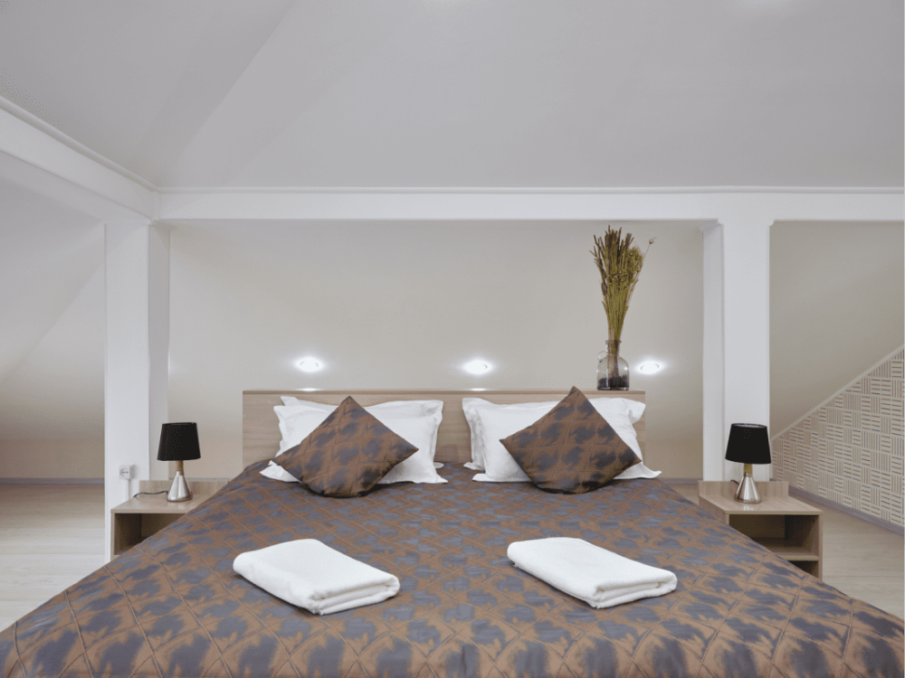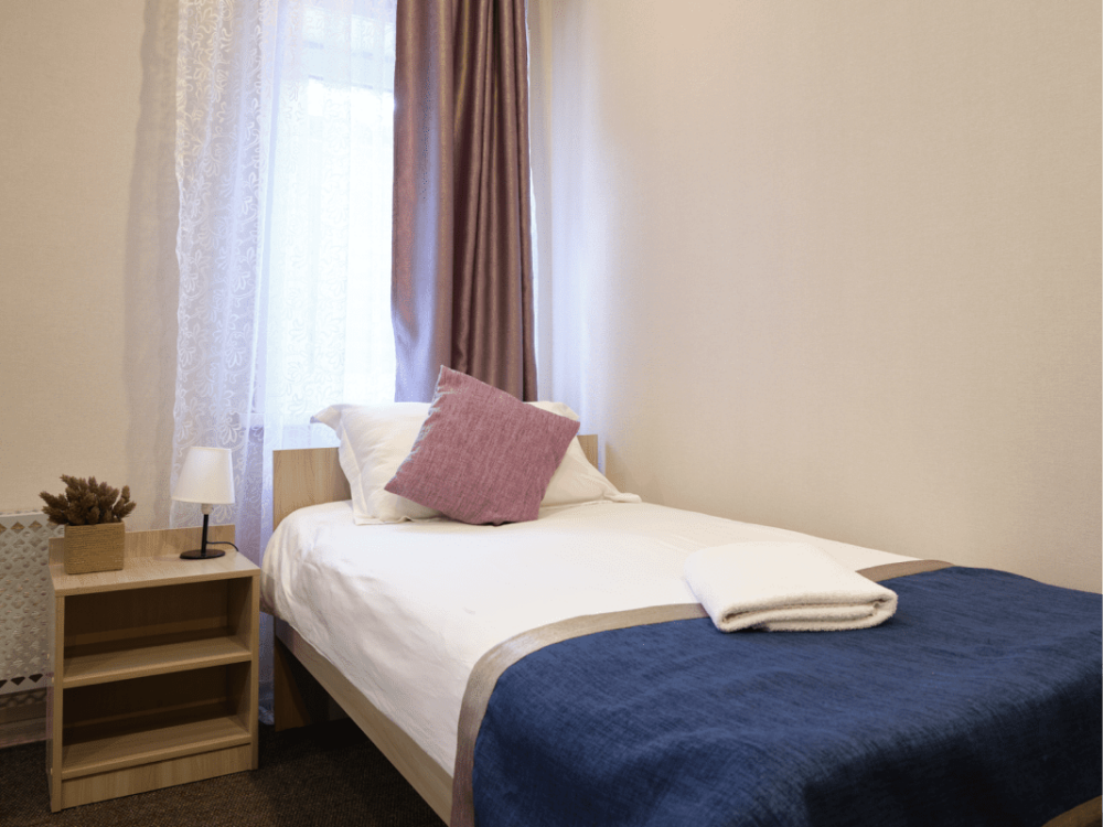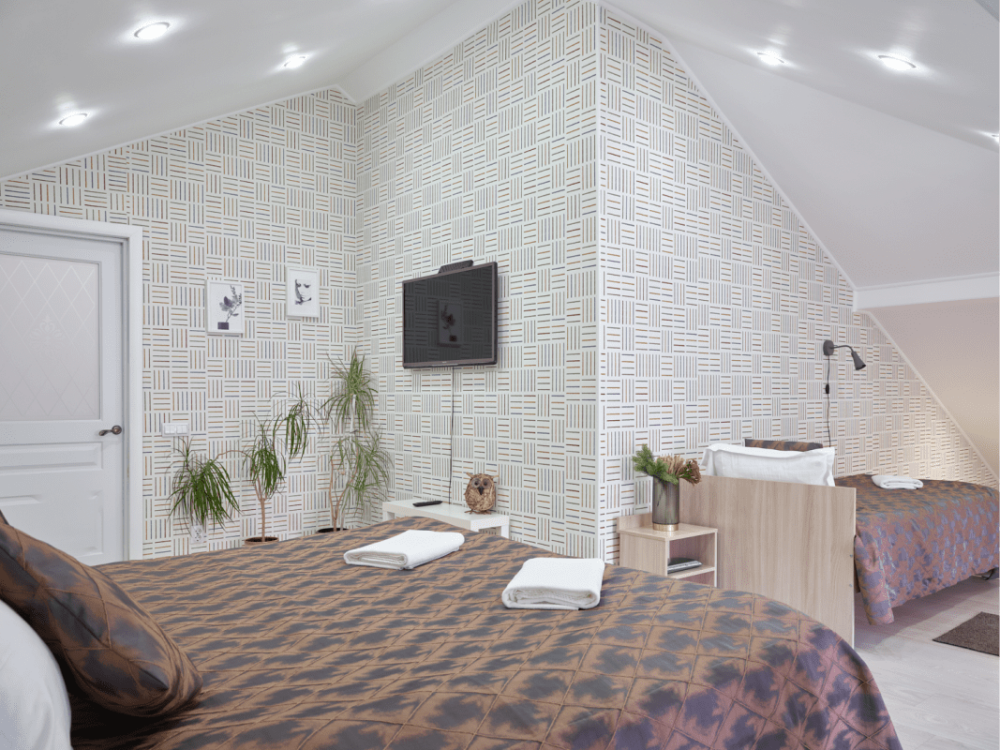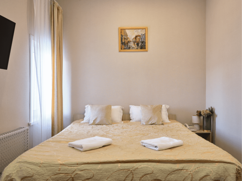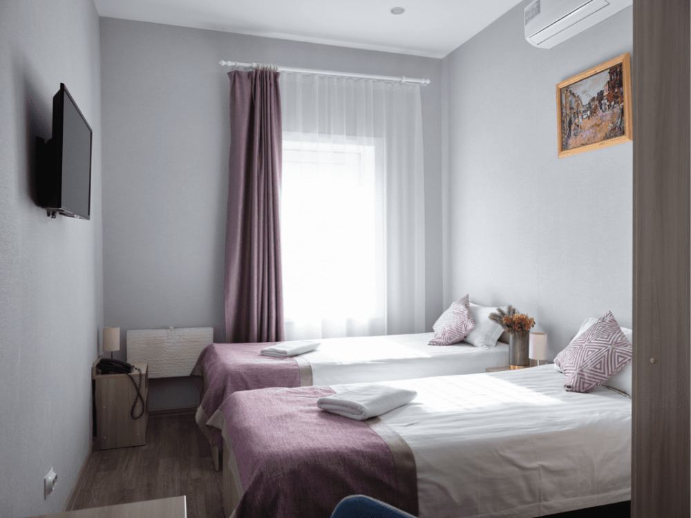 Предусмотрено размещение гостей на одной отдельной кровати и одной большой, либо двух раздельных кроватях.
