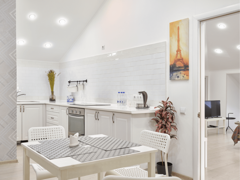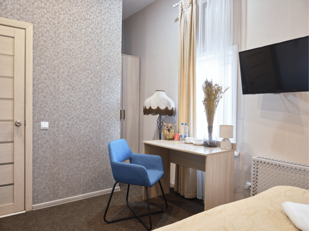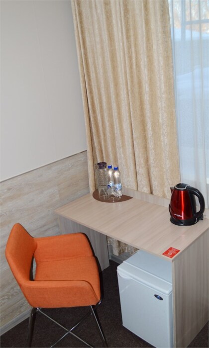 Для удобства гостей отеля в номерах данной категории расположены: кухонная зона, оборудованная плитой, холодильником, посудой и всем необходимым для комфортного проживания, двуспальная и односпальная кровати, LCD телевизор, ванная либо душевая, тапочки, фен, туалетные принадлежности, утюг, сушка для белья.