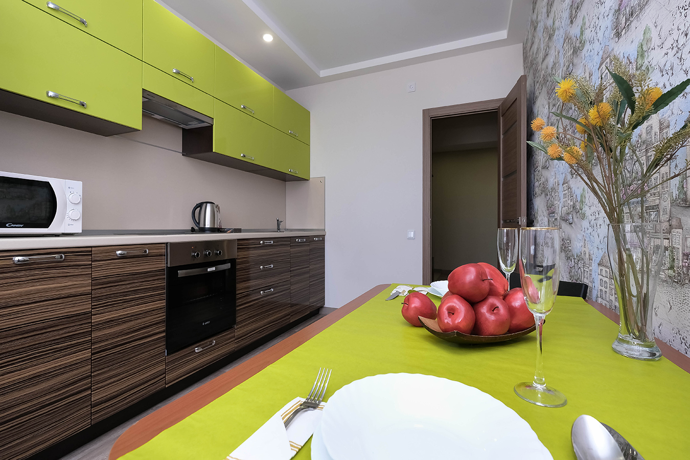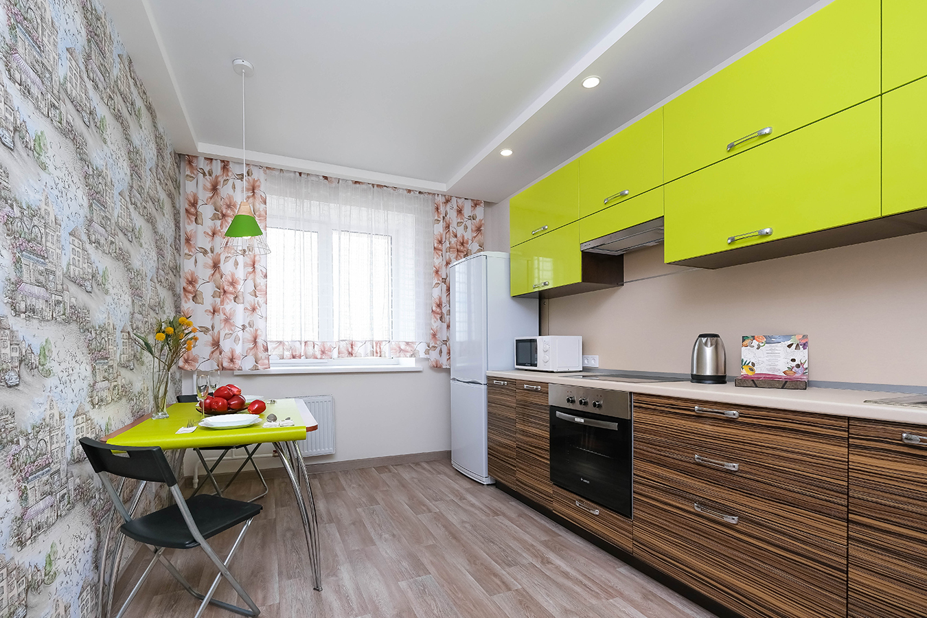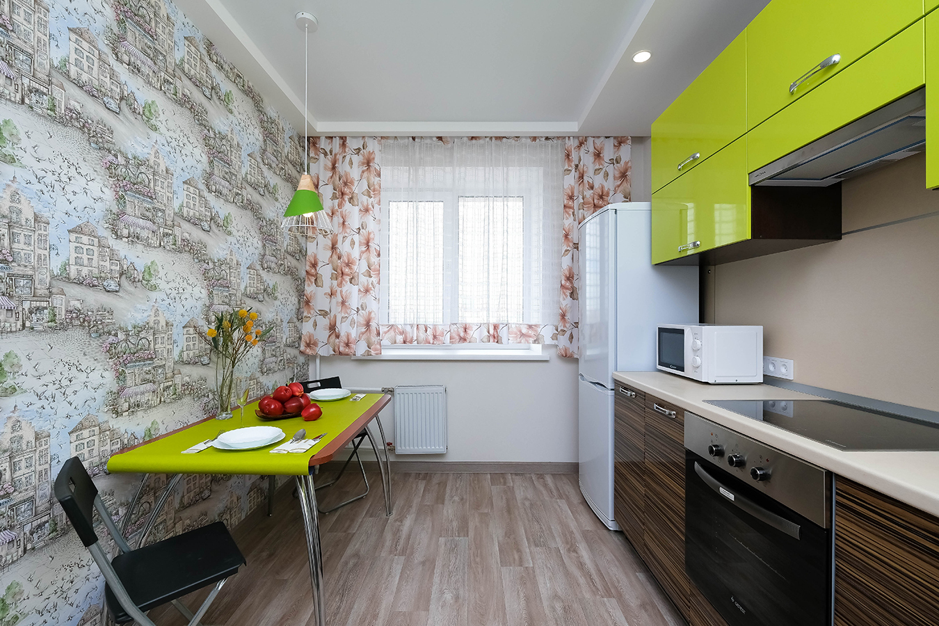 В квартире есть все необходимое для комфортного проживания: вся необходимая мебель, 2-спальная кровать, большой, раскладной диван, дополнительное спальное место - евро-раскладушка, стиральная машина, холодильник, микроволновка, плита, чайник, посуда для приготовления пищи. Имеется утюг, фен, гладильная доска, сушилка для белья, средства гигиены. Подключен TV и высокоскоростной безлимитный WI-FI.