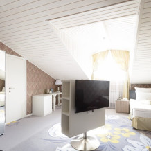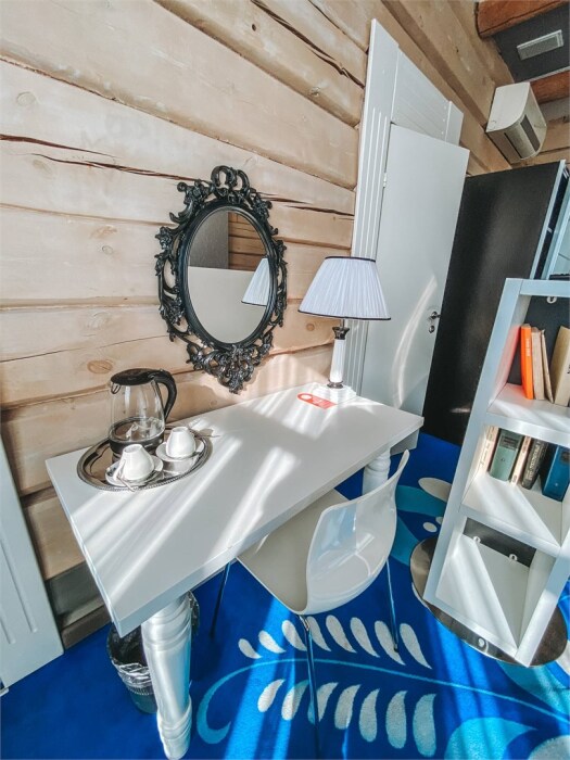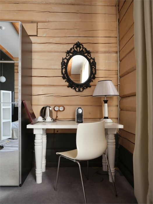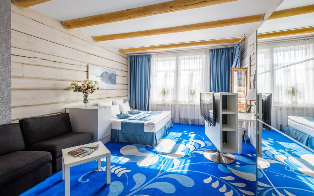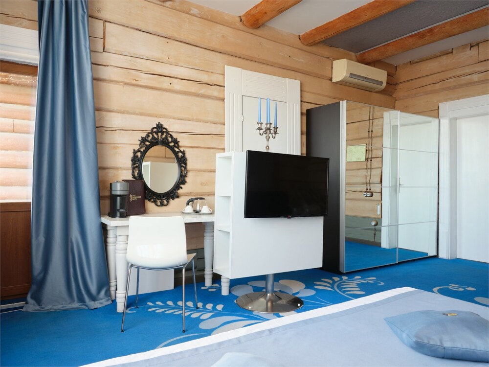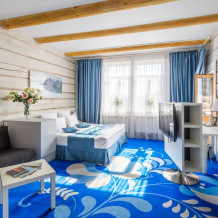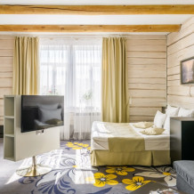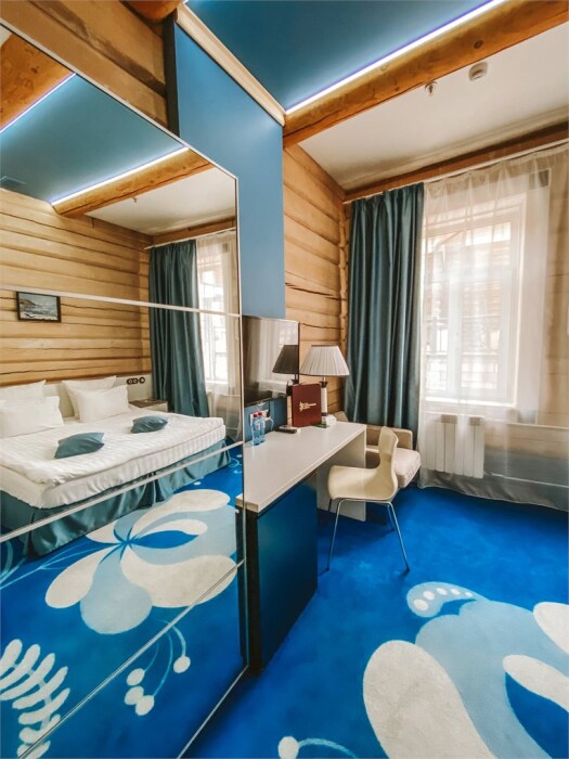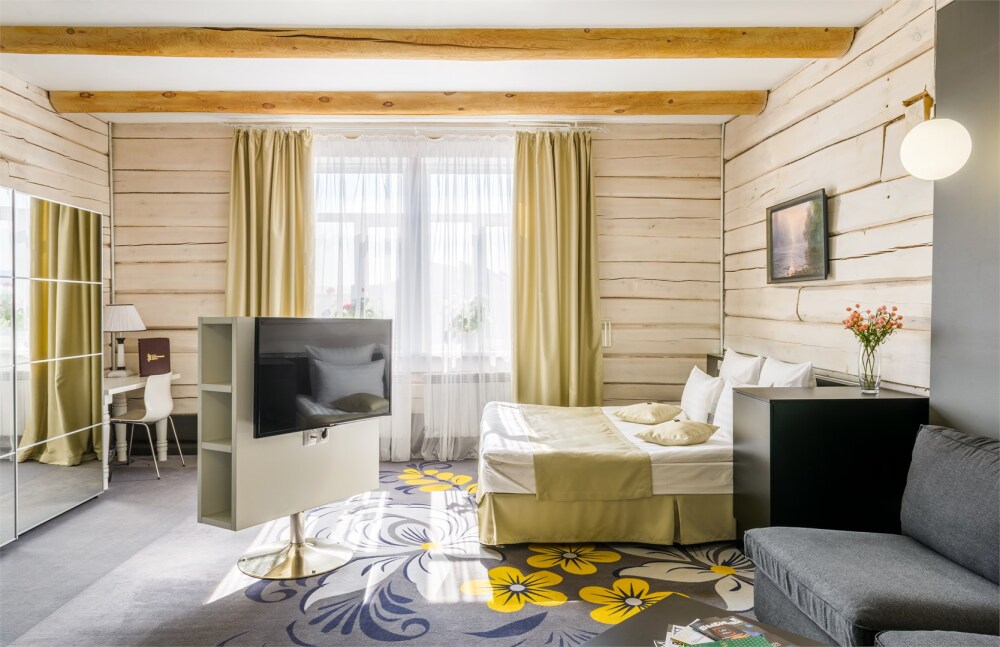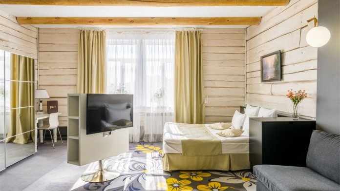 Небольшой номерной фонд в 14 номеров позволяют уделять максимальное внимание каждому гостю, в отеле нет места шуму и суете. Дизайн отеля выполнен в деревянном стиле с использованием самых современных технологий. Вы можете выбрать из 3-х категорий номеров: Стандарт, Полулюкс, Студия. В каждом номере кровать King-size или 2 полутораспальных кровати, зона отдыха, рабочая зона, ванная комната укомплектована современной сантехникой, махровыми халатами и тапочками, а также набором косметических средств класса Люкс. Все номера в отеле являются некурящими.