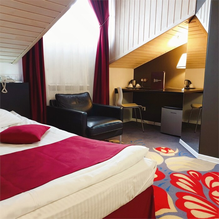 В номере 2 отдельные кровати, рабочий стол, ТВ с кабельными каналами, кондиционер, мини-бар, WI-FI. Cан. узел c душевой кабиной и полным комплектом индивидуальных гигиенических принадлежностей, халатами и тапочками.