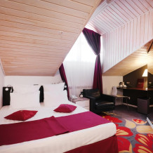 В номере одна большая кровать, рабочий стол, ТВ с кабельными каналами, кондиционер, мини-бар, WI-FI. Cанузел c душевой кабиной и полным комплектом индивидуальных гигиенических принадлежностей, халатами и тапочками.