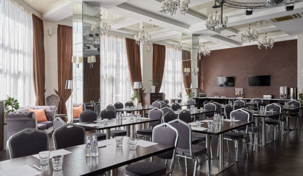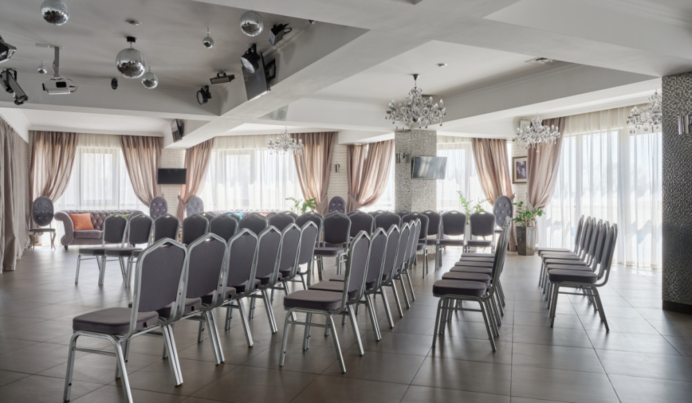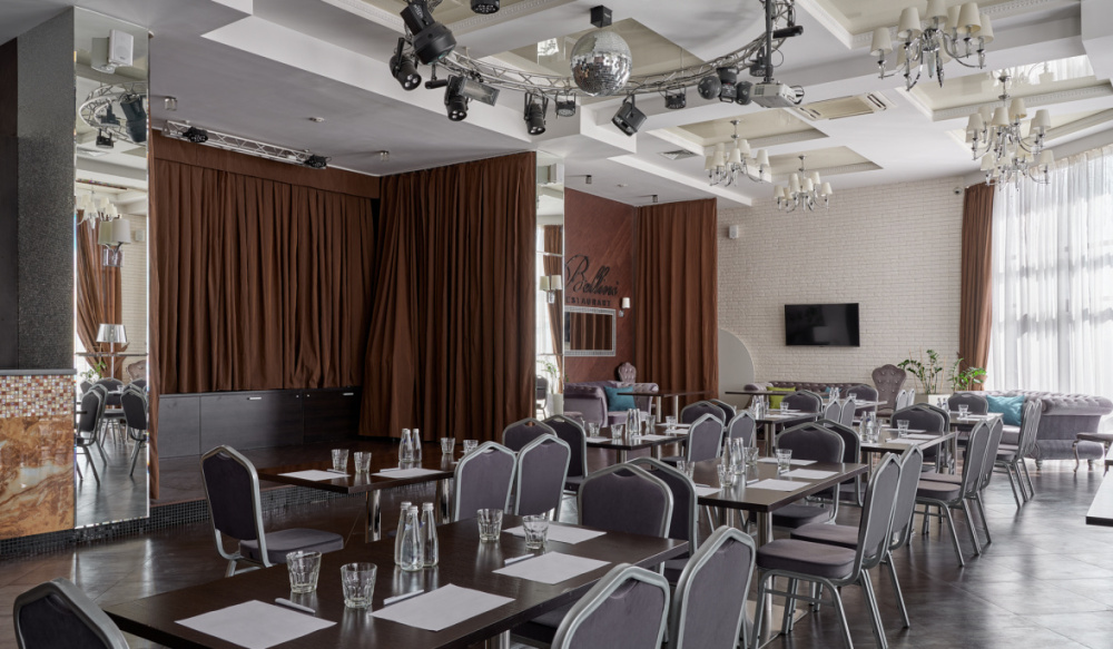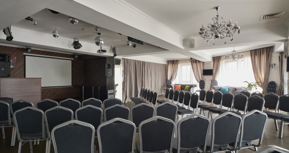 Для организации конференций, тренингов и семинаров мы предоставляем самую современную конференц-площадку. Техническая поддержка специалиста на протяжении всей конференции, экран, проектор, профессиональное звуковое оборудование. Конференц-зал вместимость до 100 человек расположен на 1 этаже ресторанного комплекса, конференц-зал вместимость до 50 человек и переговорная комната - на 2 этаже.