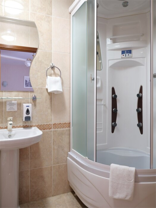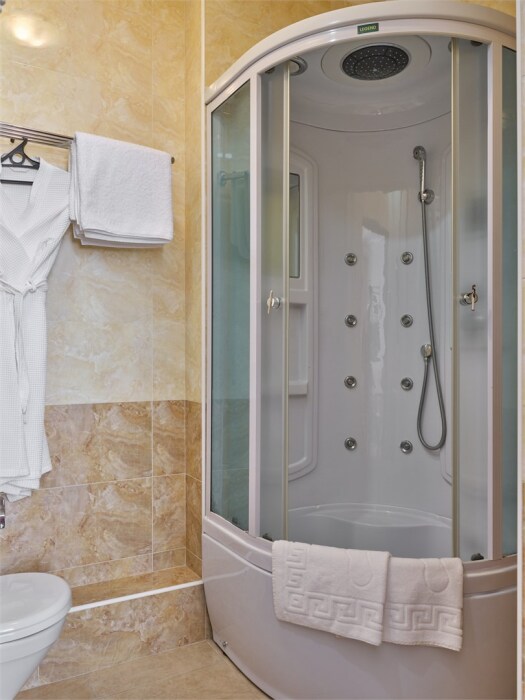 Оснащен мебелью из натурального дерева (две полутороспальные кровати, плательный шкаф, тумба) телевизор, мини-бар, кондиционер, персональный сейф. Ванная комната с душевой кабиной/ванной.