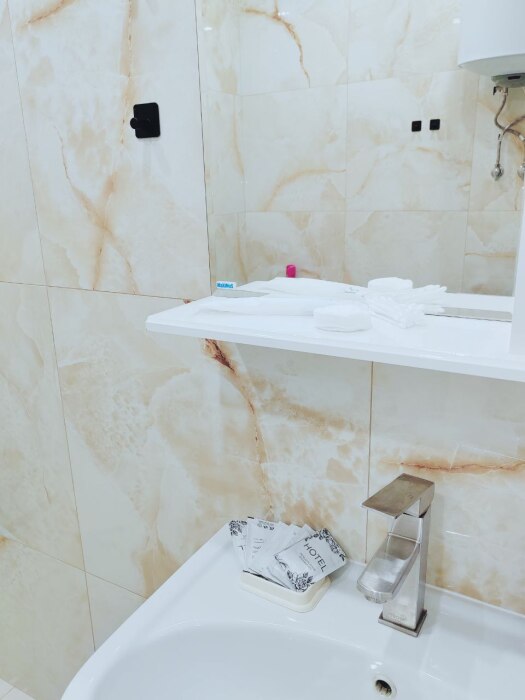 Чистое, застеленное постельное белье и полотенца.