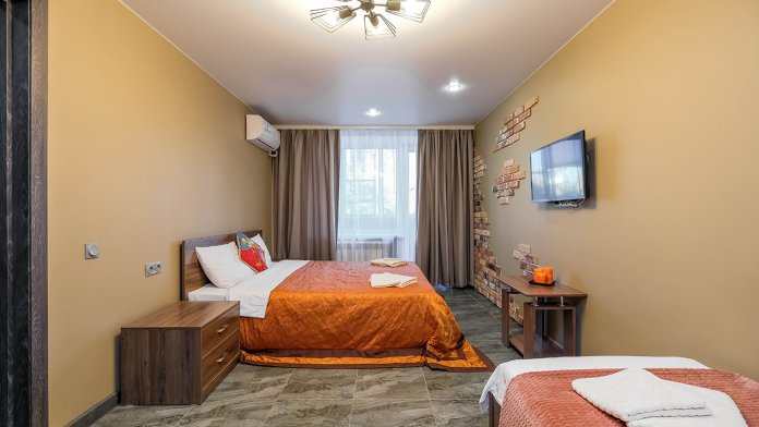 В квартире есть все для комфортного проживания: 2-спальная кровать, диван евро-книжка, 1-спальная кровать, бытовая техника, Wi-Fi, стиральная машинка, холодильник, телевизор смарт, фен, утюг, чайник, кондиционер, микроволновая печь.