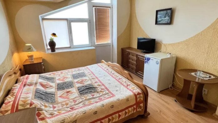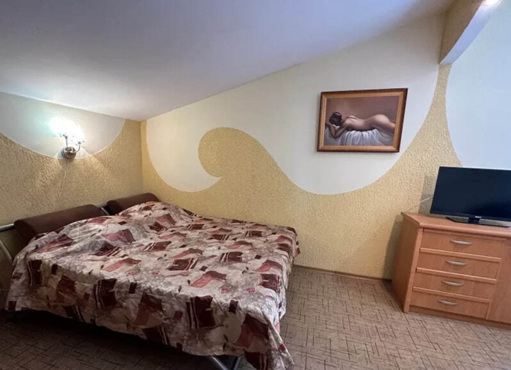 Двухкомнатный двухместный номер, площадью 33 кв.м. Номер находится на 2-м этаже. В номере есть: кондиционер, холодильник, телевизор. На балконе расположена кухня, с необходимой посудой для приёма и приготовления пищи. Также в номере есть с/у (душ, туалет), горячая и холодная воды круглосуточно. Кровать (спальное место 160 см), раскладной диван. С балкона номера открывается вид на город. Номер предназначен для 2 человек, с возможностью размещения 1 человека на доп. месте