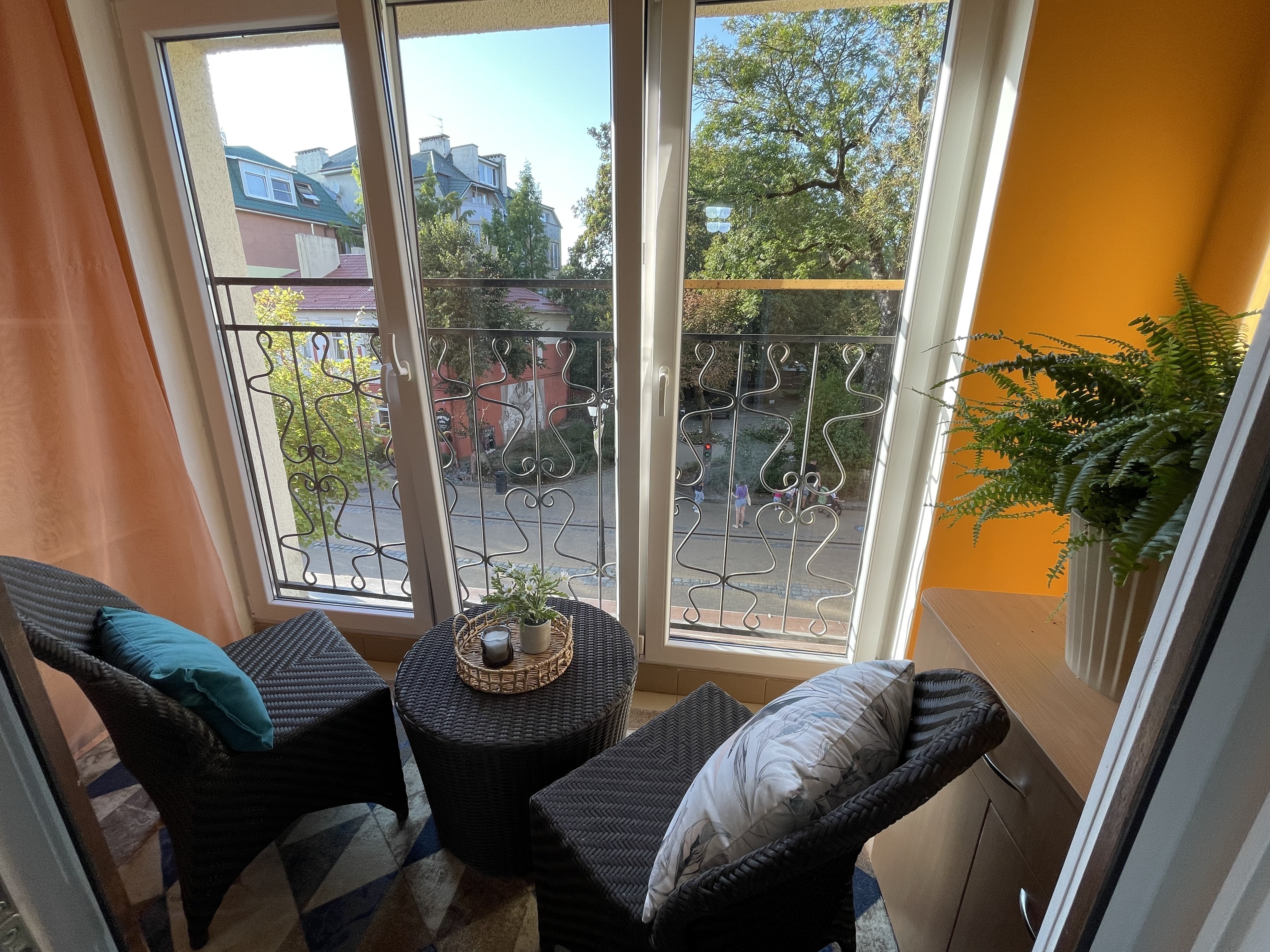 Шикарный вид на историческую улицу города открывается из каждой комнаты. С лоджии в кухне-гостиной перед вами откроется целый мир: жизнь улицы, кошки, светофоры и Котошев.