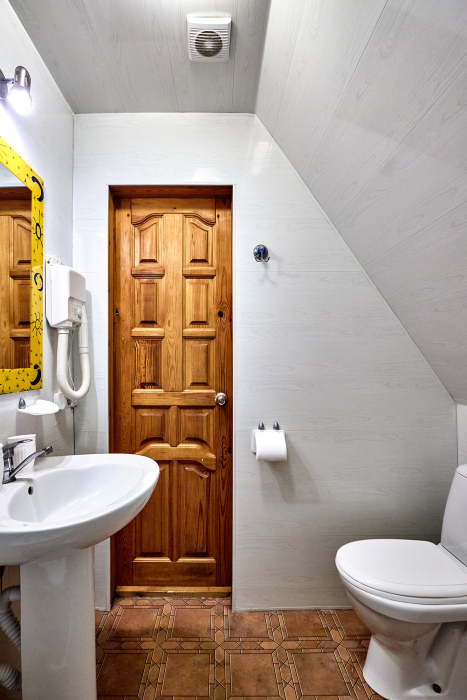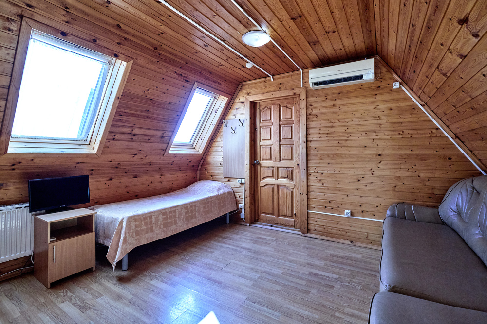 Номера оборудованы всем необходимым для комфортного отдыха. В каждом номере: сплит-система, телевизор, холодильник, электрочайник, фен, полотенца, туалетные принадлежности, полотенца, постельное белье.