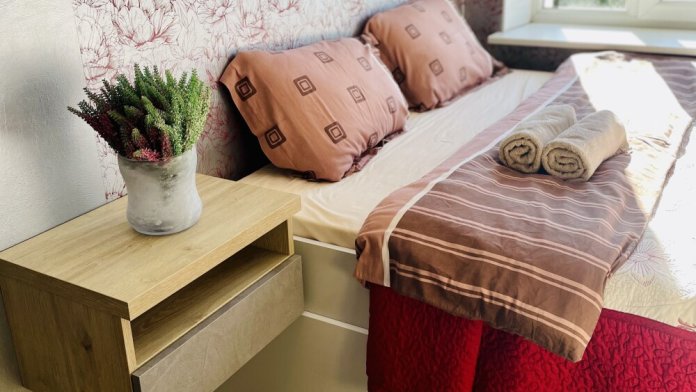 - Широкая двуспальная кровать и диван, удобный для сна двух человек.