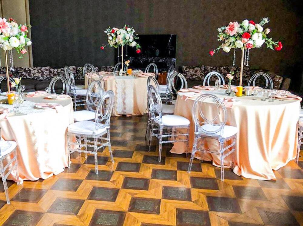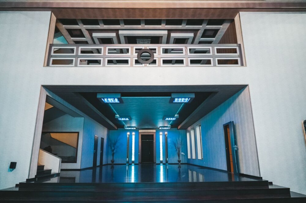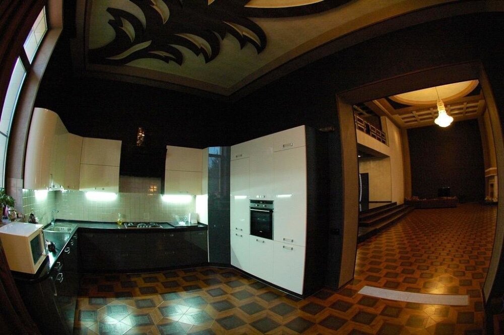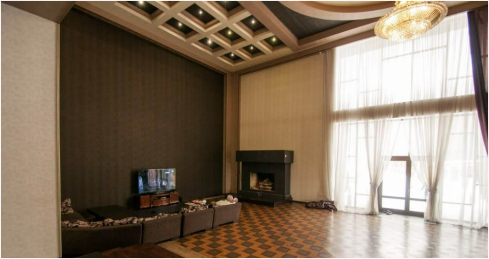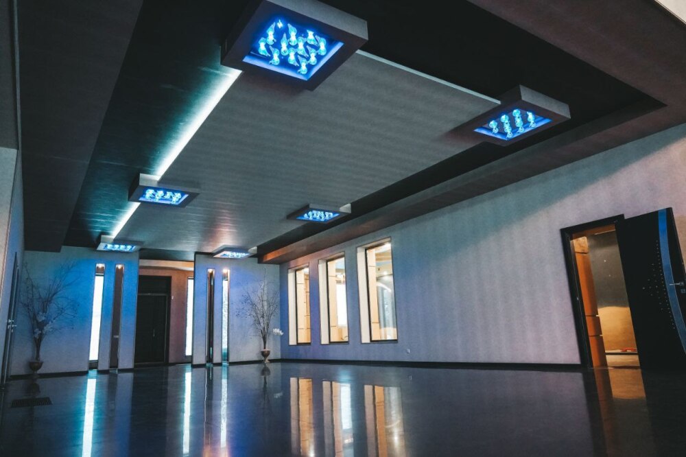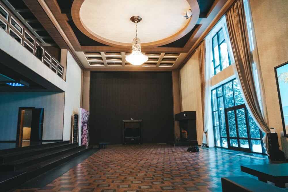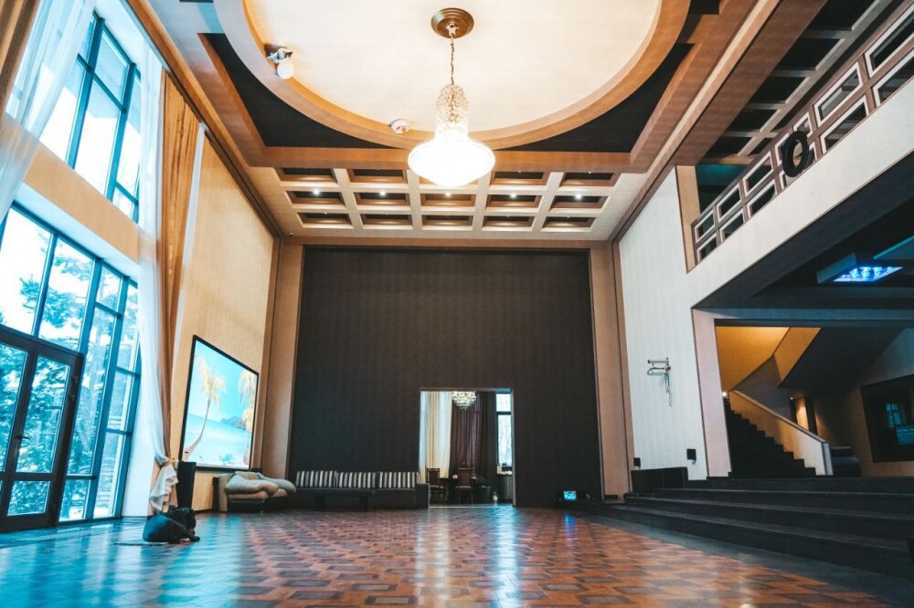 Просторный зал: 200 м² с высотой потолков 8 м