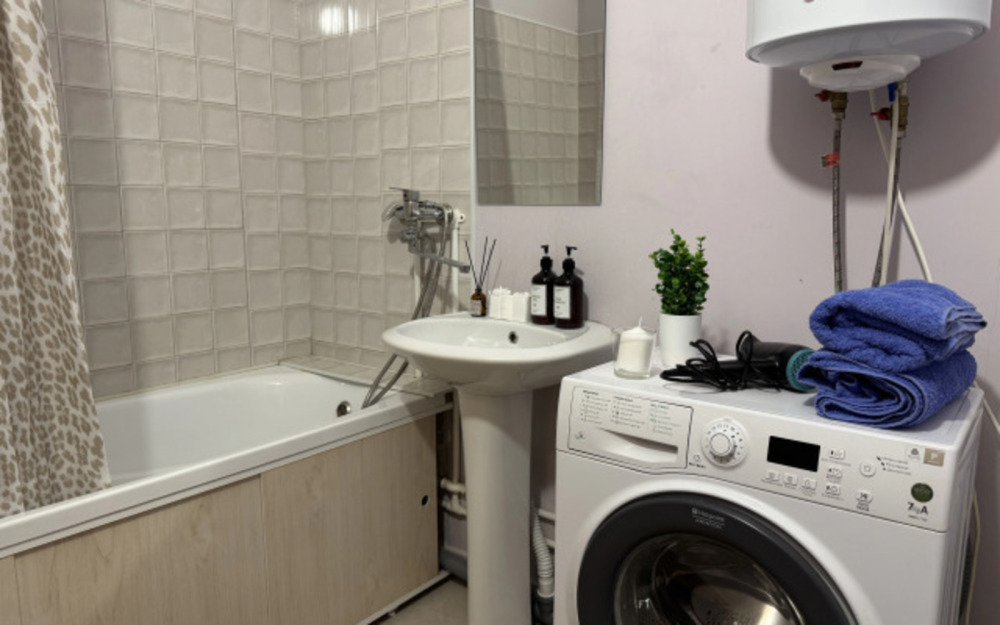 О квартире: двуспальная кровать, телевизор, Wi-Fi, укомплектованная кухня со всем необходимым (холодильник, плита, чайник, микроволновая печь, а также посуда, приборы), фен, утюг, гладильная доска, стиральная машина, сушилка для белья, постельное белье, полотенца, шампунь, гель для душа, жидкое мыло, чай, кофе, сахар, соль.