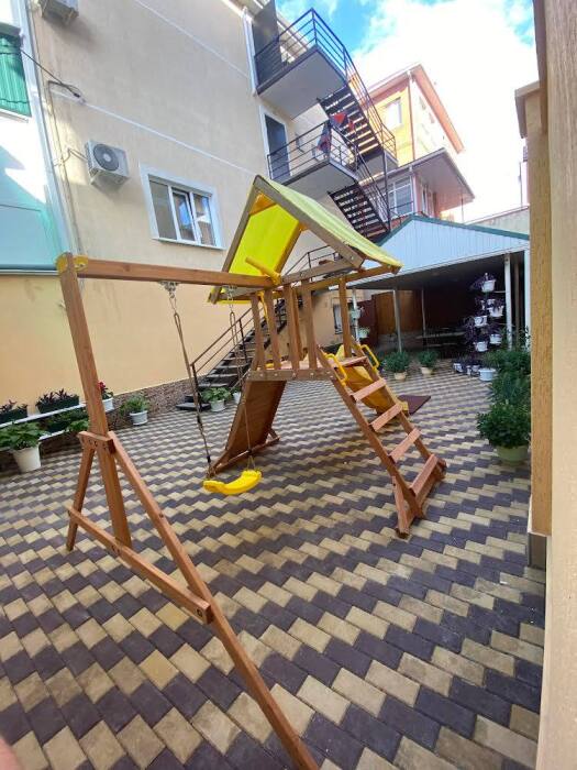 На территории гостевого дома есть общая кухня со всей необходимой посудой и приборами. Так же, для гостей организована стоянка у дома. Для детей имеется детская площадка на территории.