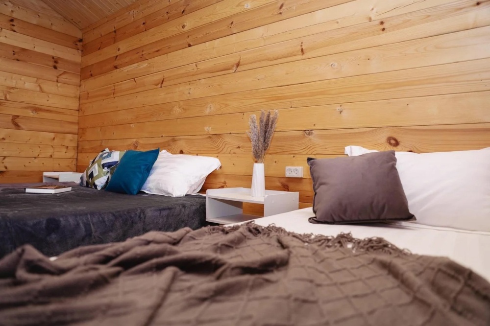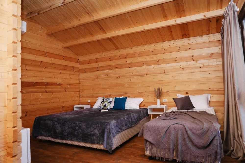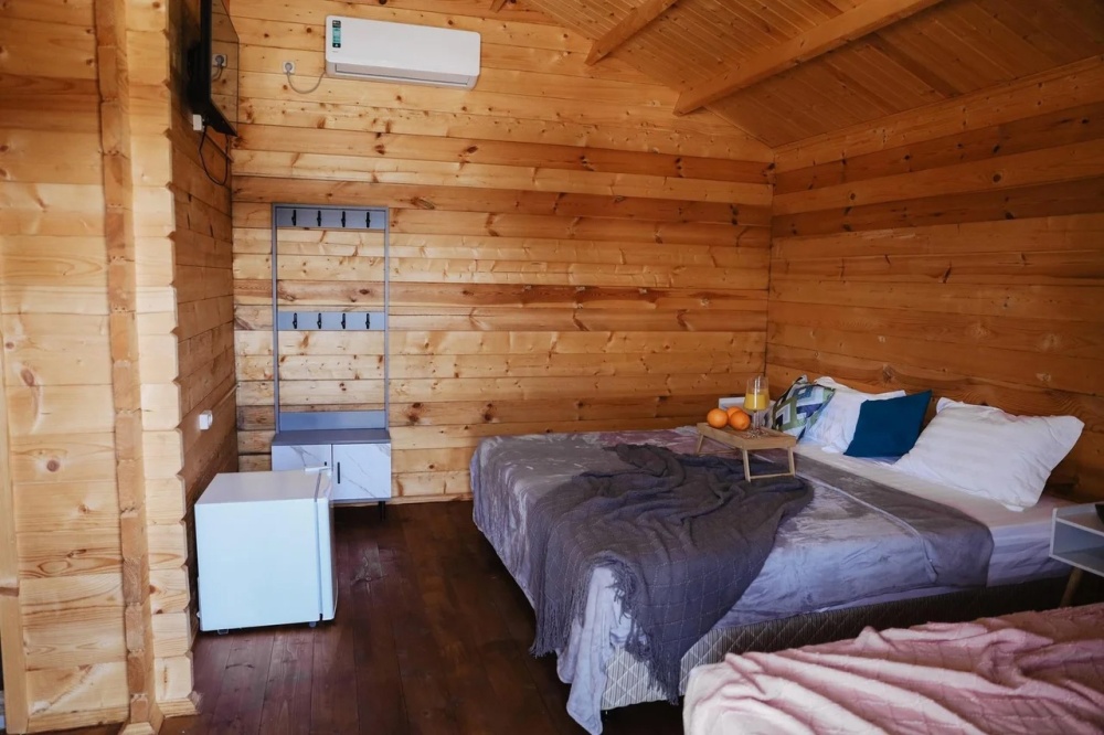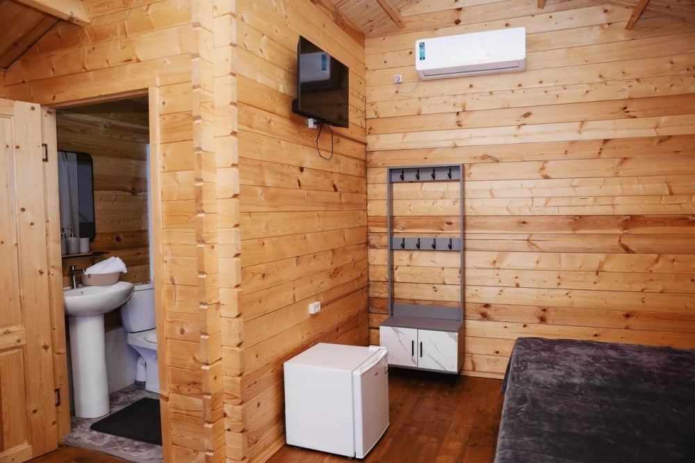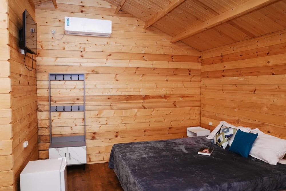 Для наших гостей мы предлагаем коттеджные домики, полностью оборудованные для комфортного проживания. В каждом домике есть чайник, холодильник, смарт ТВ, WI-FI, также имеется кондиционер и ванная комната. У каждого домика есть своя веранда на которой расположены стол и стулья, для отдыха на свежем отдыхе.