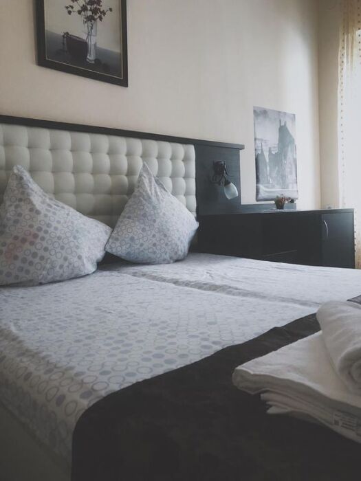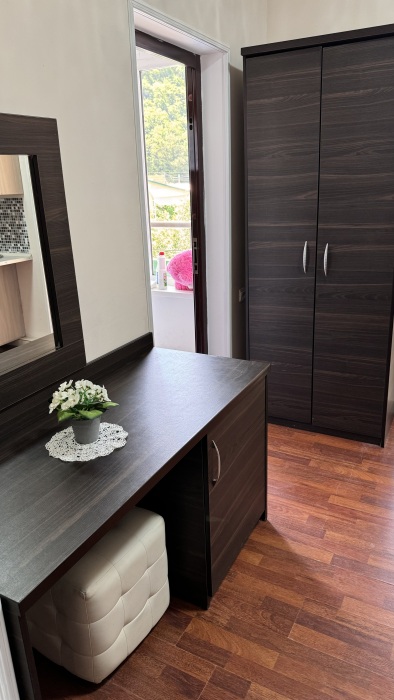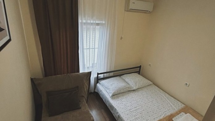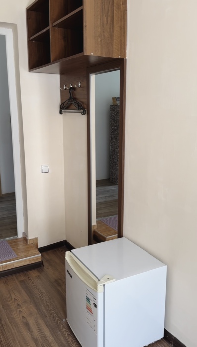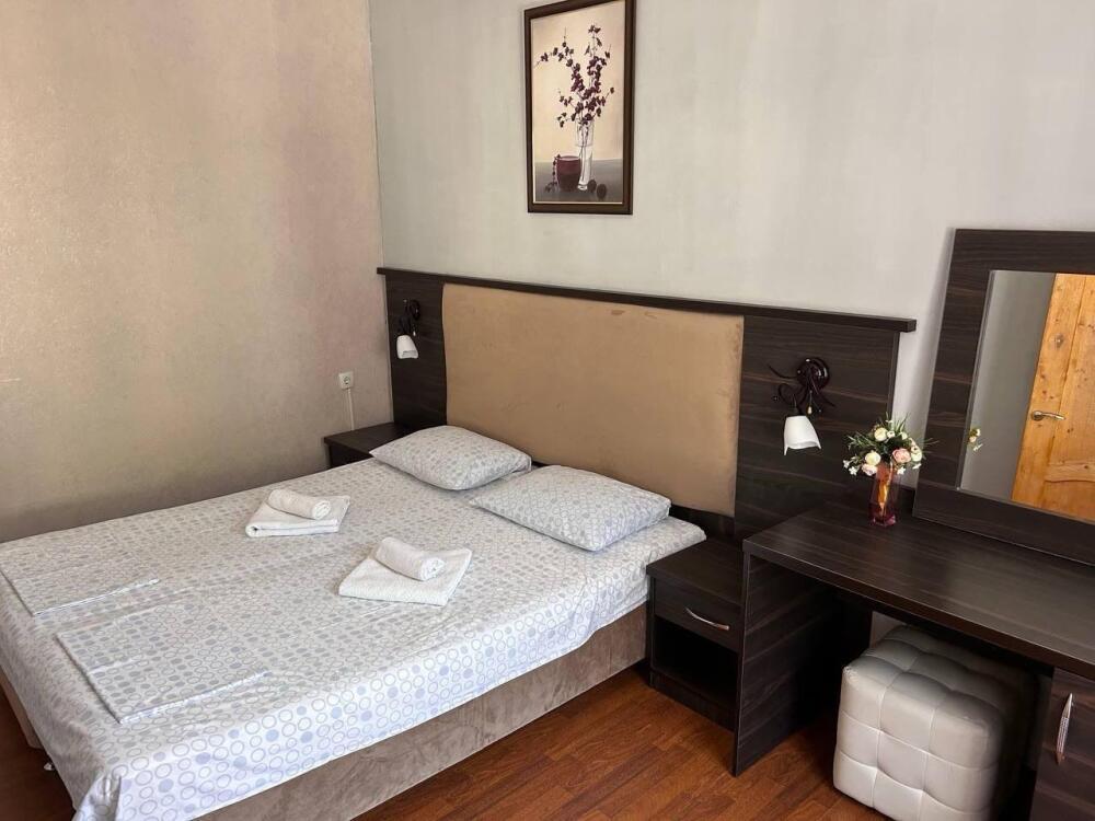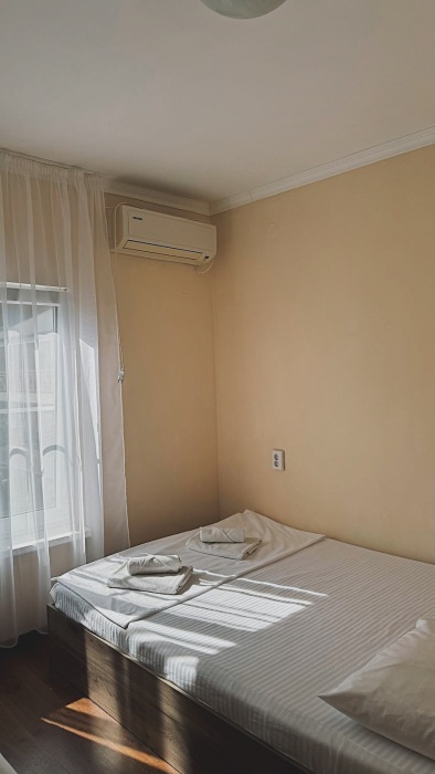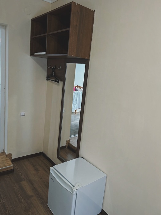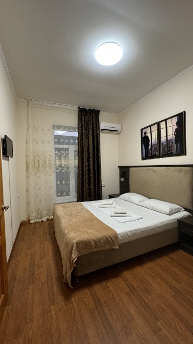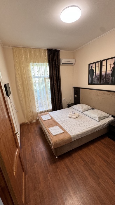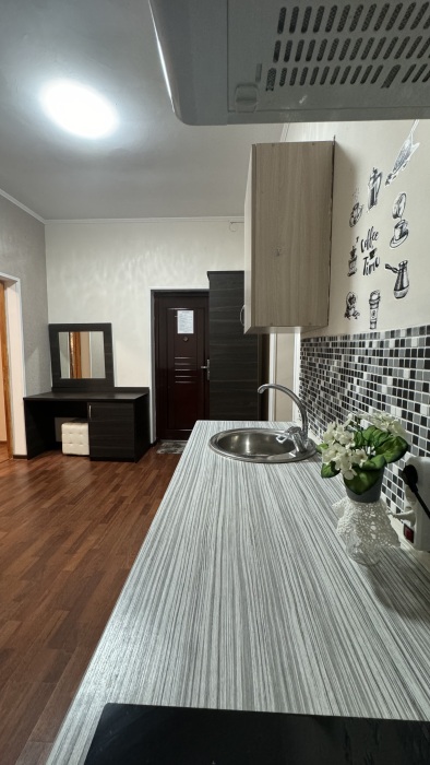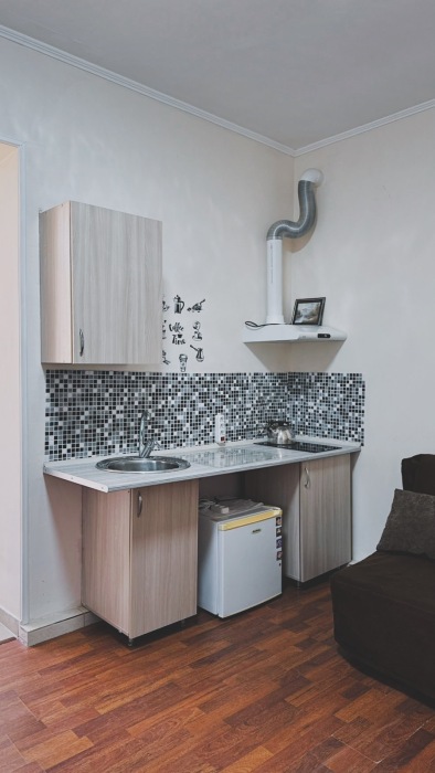 Номер-студия — это однокомнатный номер с кухней,что идеально подходит для длительного проживания. Кухонная зона (мини-кухня): Наличие электрической плиты, холодильника, раковины и набора посуды. Меблировка: Двуспальная кровать,диван-кровать, обеденный стол, стулья, шкаф, рабочее место. Оснащение: Кондиционер, телевизор, Wi-Fi. Ванная комната: Полноценный санузел (душ ), зеркало, набор полотенец, фен, косметические средства. Номер студия отлично подходит для тех, кто предпочитает готовить самостоятельно или путешествует с семьей.