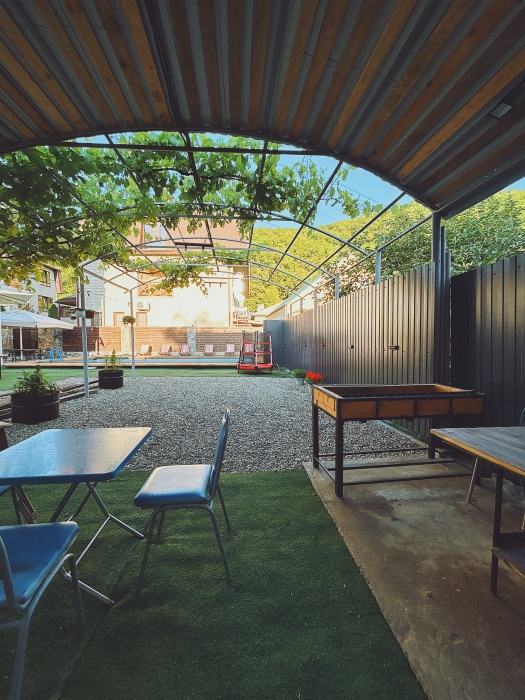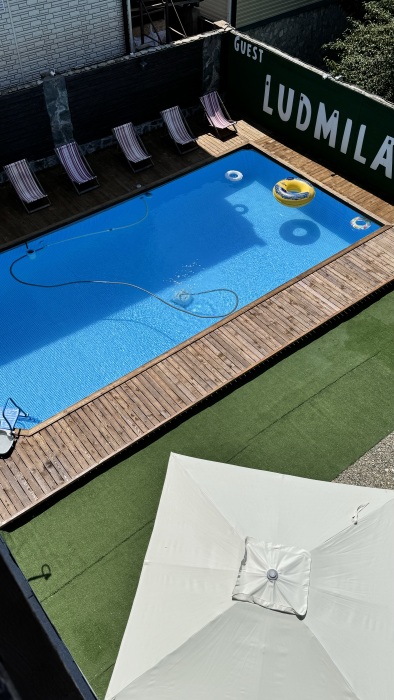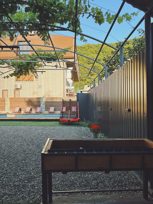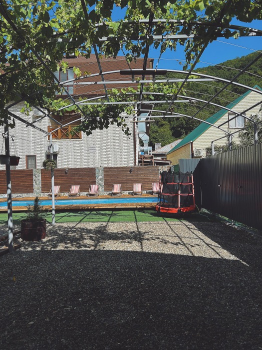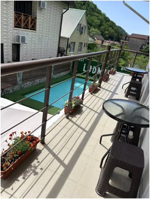 Территория комплекса зелёная и ухоженная. Бассейн чистый и привлекательный. Персонал встречает гостей приветливо. Атмосфера в комплексе спокойная, с красивыми видами. Гостям предоставляются удобства в виде лежаков для загара, детской площадки и парковки. В пешей доступности от комплекса находятся кафе и рестораны.