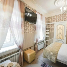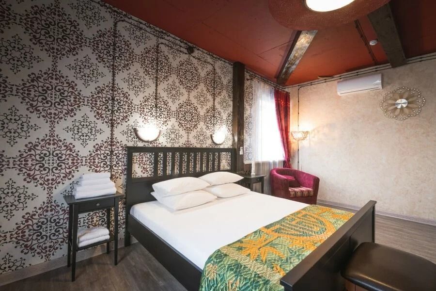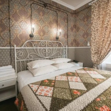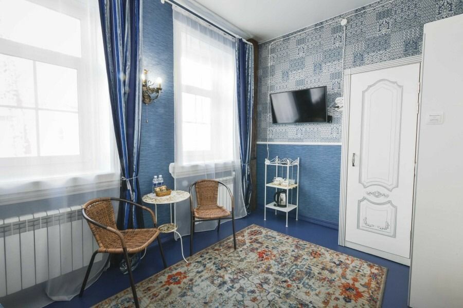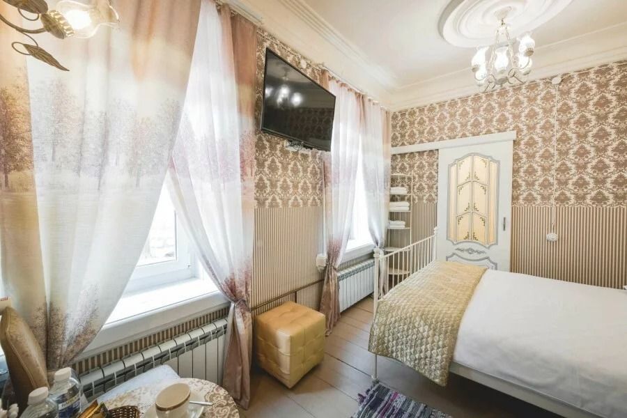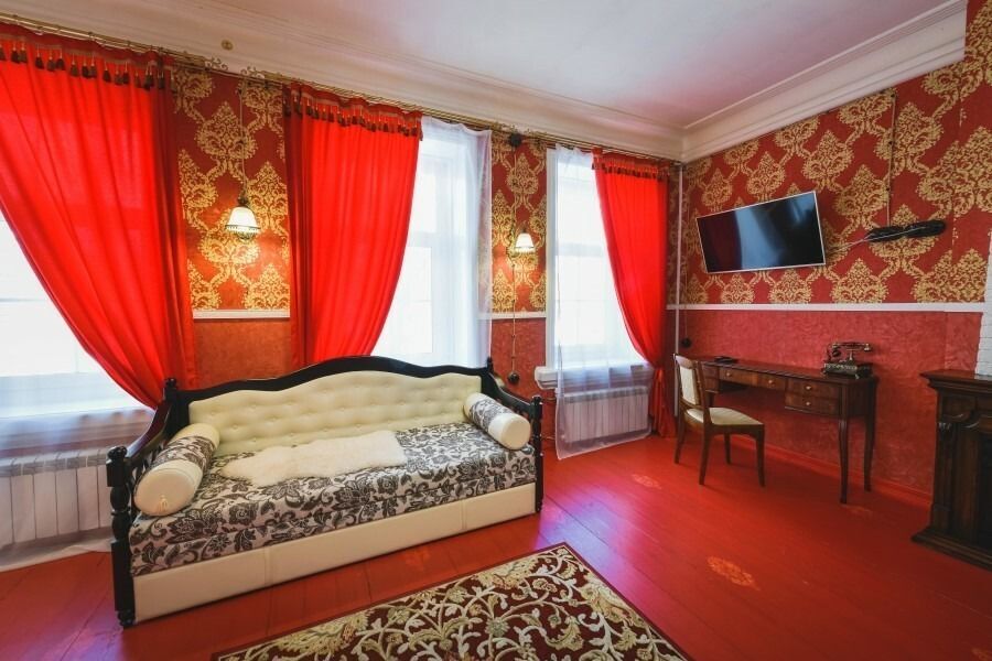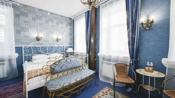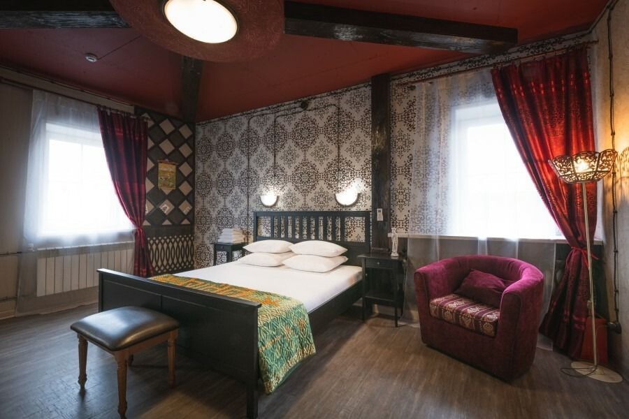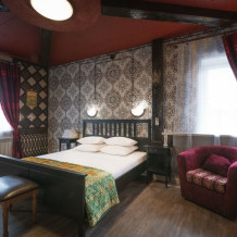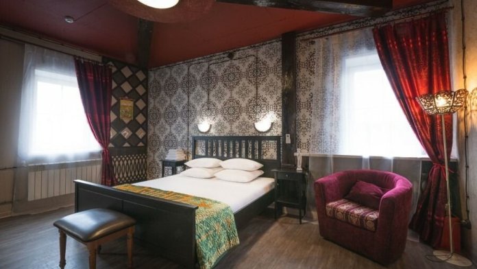 Каждый номер оформлен в историческом стиле по индивидуальному дизайну. В отеле есть номера «Купеческий», «Царские палаты», «Русская печка», а также комната, напоминающая монгольскую юрту, комната в стиле Прованс и другие. В каждом номере гости отеля могут перенестись в прошлое и почувствовать себя представителями разных сословий. При этом в номерах есть все современные удобства для проживания. Гостевой дом подходит для тех, кто предпочитает эксклюзивное размещение, а также ценит комфорт и уединение!