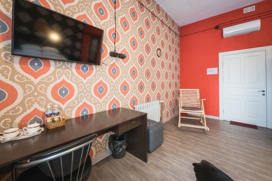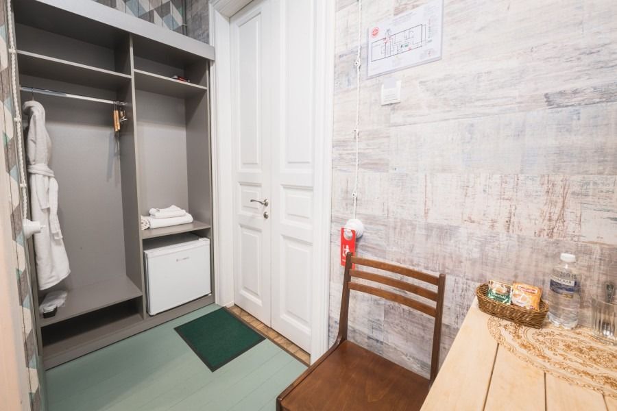В номере: широкая кровать с матрасом повышенной комфортности, 4 подушки, большой и удобный шкаф, удобное рабочее пространство, кресло-качалка, телевизор, столик для чаепития, чайник, холодильник, ванная комната с феном и принадлежностями.